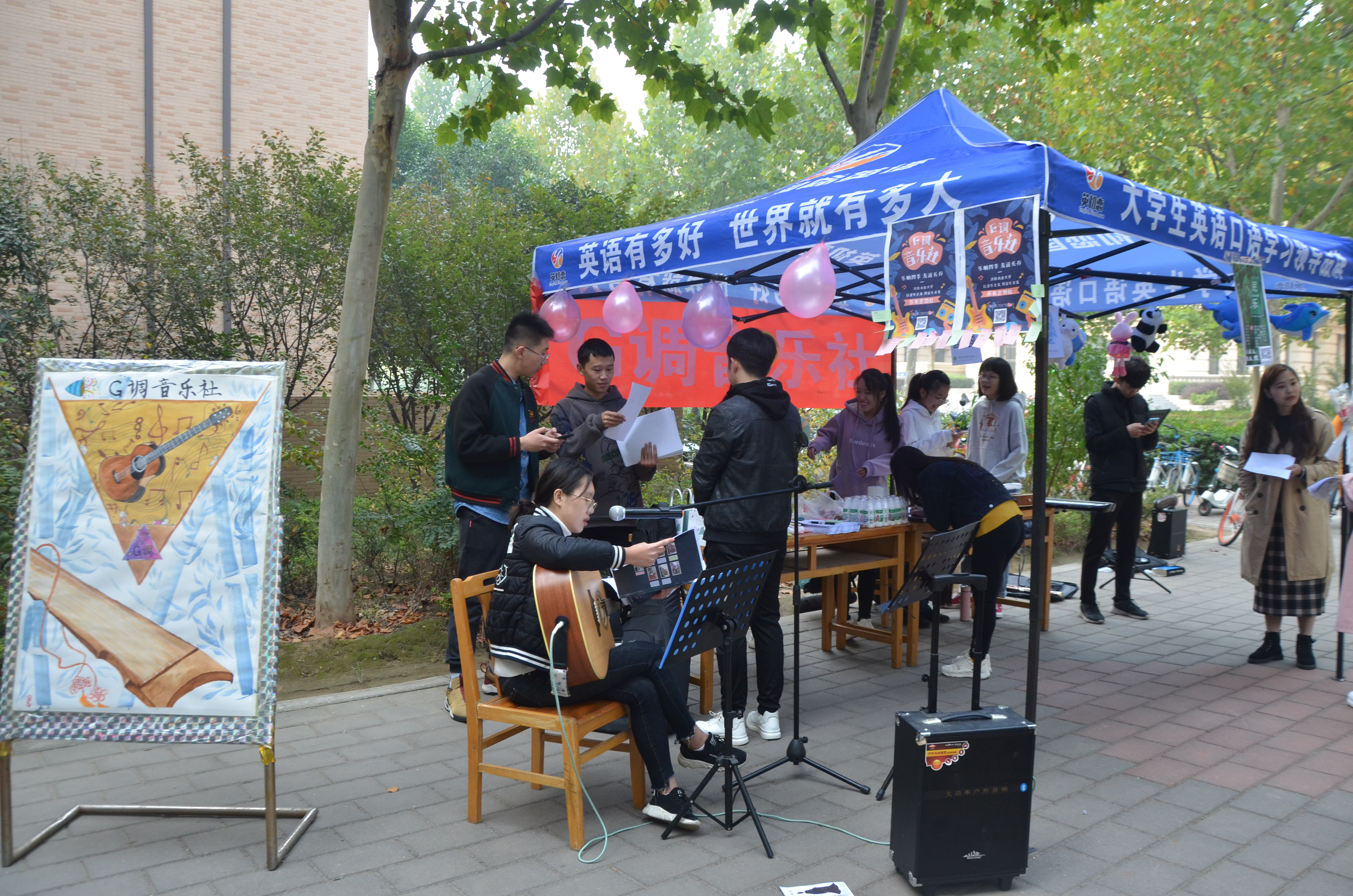 本网讯(审稿:李沛 供稿:梅如意)为丰富学生校园文化生活,提高学生综合素质,增强学生交际能力,11月9日,“百团大战”社团招新活动在龙子湖校区一餐厅广场上如火如荼地进行着。其中隶属于成人频道 的四大社团——英译协会、横溢方舟社、微光公益协会、G调音乐社在社团招新中尽显风采。