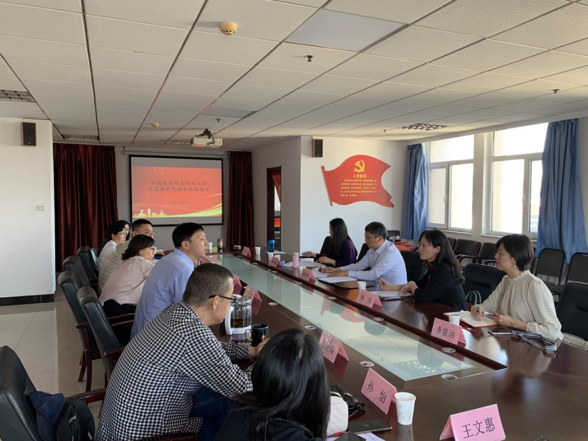 院长张俊杰一行5人就大学英语教学改革等方面的工作赴河北地质大学语言文化学院进行调研交流。河北地质大学语言文化学院院长安尚勇、党委书记林琳、副书记杨旭辉、教学秘书杜雪冰及系部主任和教师代表,和成人频道