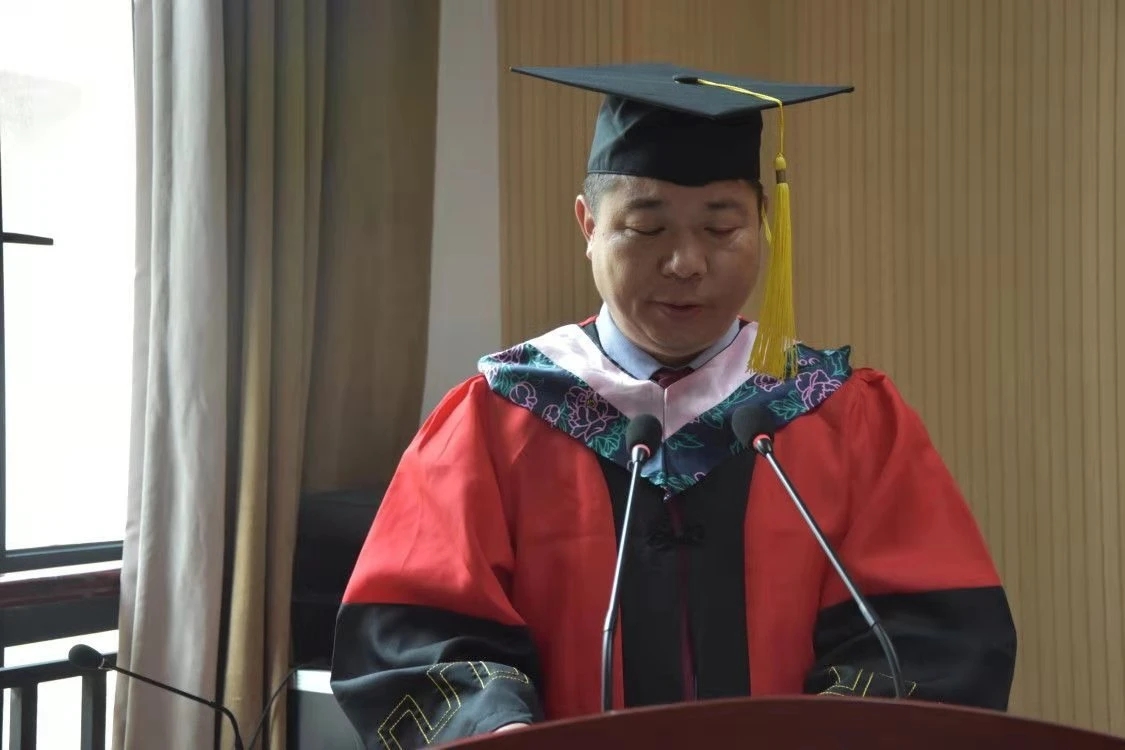毕业典礼暨学位授予仪式在庄严的国歌声中拉开序幕。院党委书记邓振营宣读了《成人频道