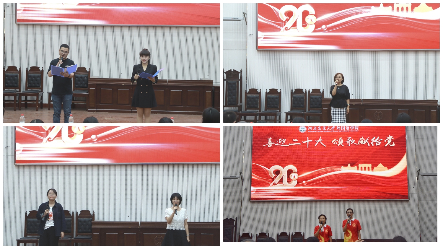 隆重举行“喜迎二十大,颂歌献给党”歌咏比赛暨首届教职工卡拉OK大赛。由学院教职工献唱的15首歌曲依次在舞台上倾情绽放,他们用一首首精彩绝伦的歌曲献礼二十大,用最深情的歌声诉说着对党和国家的无限赞美与热爱。院党委书记王燕萍、院长张俊杰携学院领导班子成员和全体教职工参加本次活动。