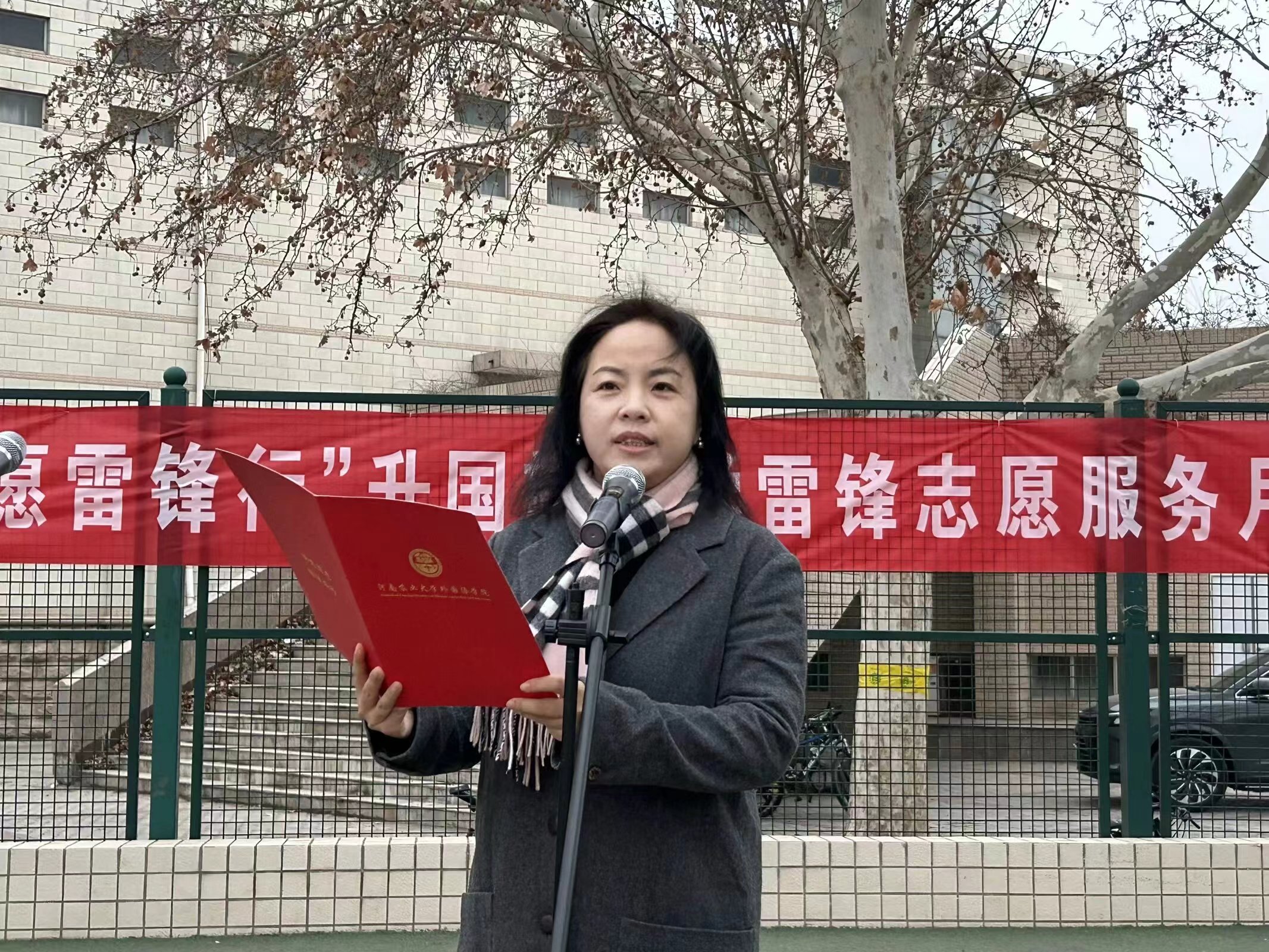 本网讯(审稿:王启佩 供稿:冯超 许菲)为深入学习贯彻习近平新时代中国特色社会主义思想,传承和弘扬雷锋精神,凝聚爱国奋进的强大力量。3月4日,成人频道 于文化路校区举行了“外语赤子心 志愿雷锋行”升国旗暨学雷锋志愿服务月启动仪式。院党委书记王燕萍、院长张俊杰携院领导班子成员出席活动,学院党政办、团委负责同志、辅导员、高年级学生代表及2023级全体本科生参加此次活动。活动由院长张俊杰主持。