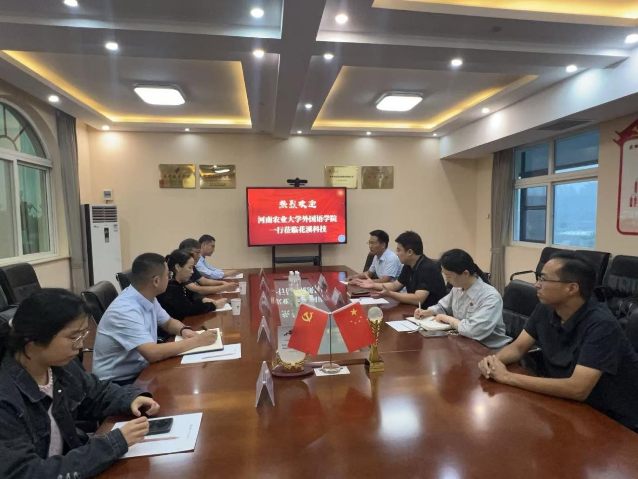 党委书记王燕萍、院长张俊杰率队赴新乡市花溪科技股份有限公司开展“访企拓岗”活动,院领导班子成员、翻译系、团委相关同志参加活动。