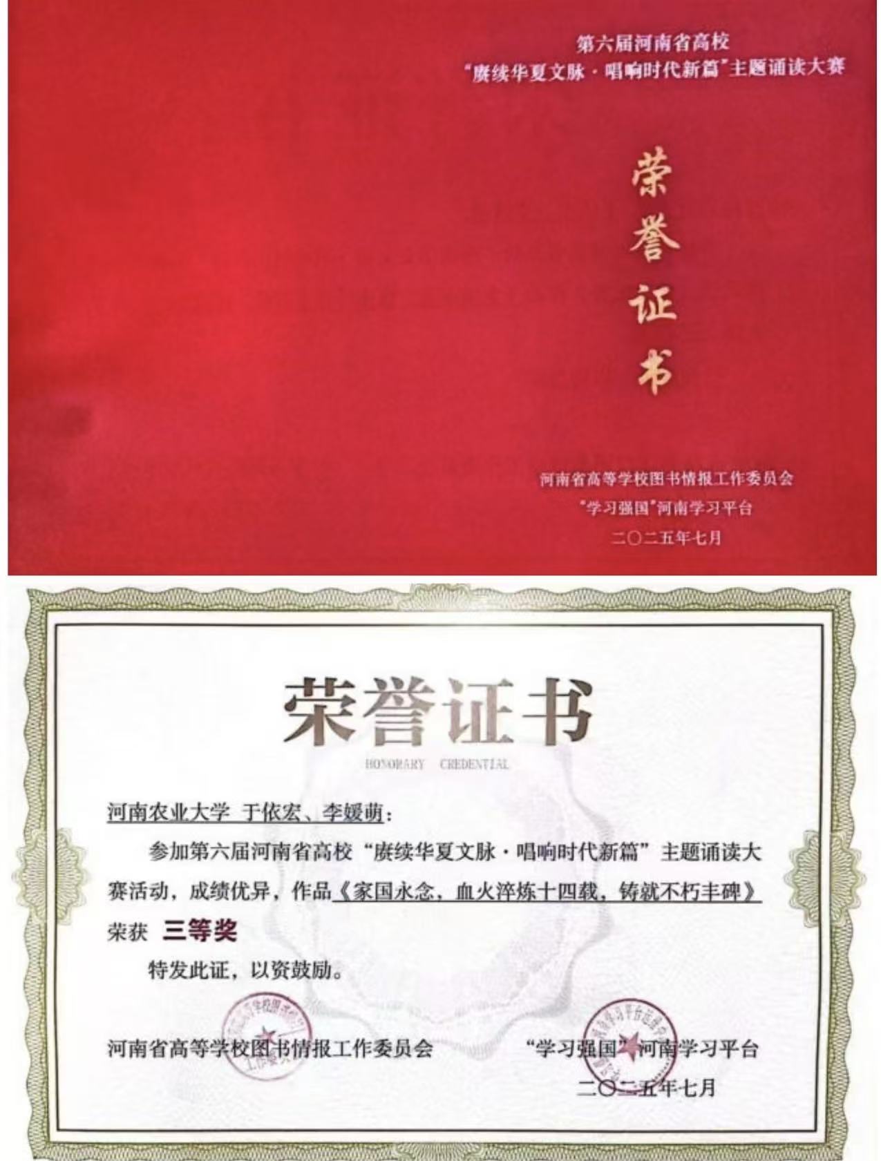 学子积极响应并参加了第六届河南省高校“赓续华夏文脉·唱响时代新篇”主题诵读大赛。