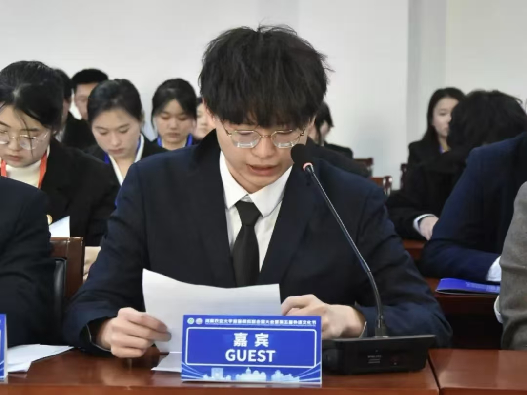 首届模拟联合国大会暨第五届外语文化节”。校党委副书记、工会主席邹松涛、校党委学生工作部部长徐峰、校团委书记雷雯、研究生工作部部长郭治鹏、郑州大学外国语与国际关系学院翻译硕士管理中心主任张庆彬、成人频道