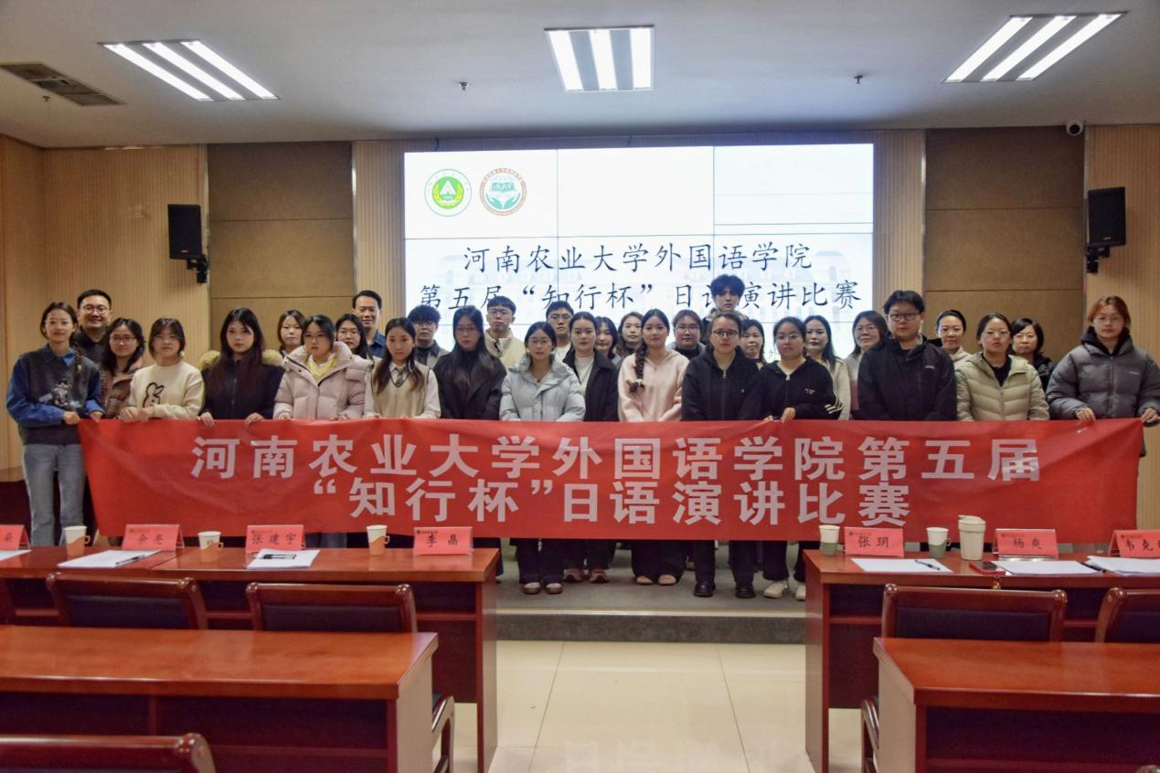 第五届“知行杯”日语演讲比赛在繁塔楼A324拉开帷幕。院党委副书记张玥出席,院团委书记、日语系教师代表、郑州力美奇企业嘉宾担任评委。