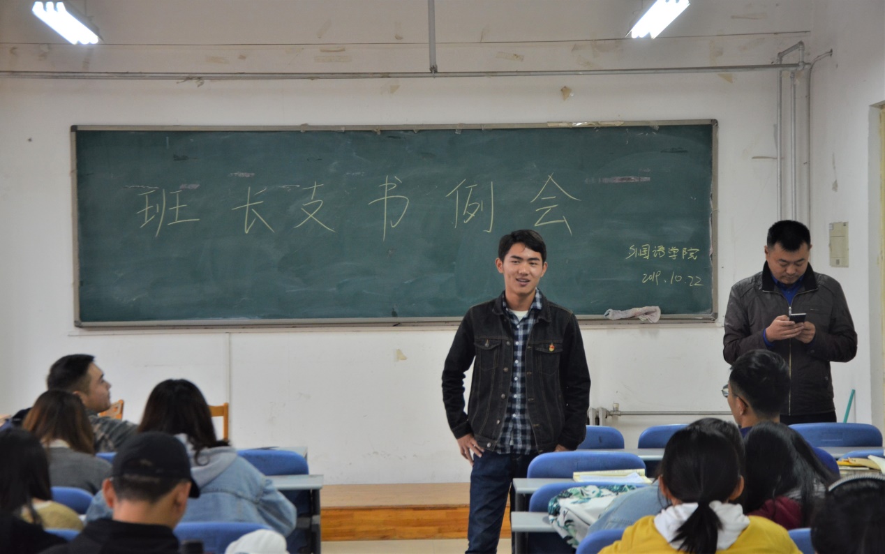 于龙子湖校区海棠园202室召开本学期第七次班长支书例会。团委书记李沛、辅导员焦雪猛携主要学生干部及各班班长支书出席此次例会。