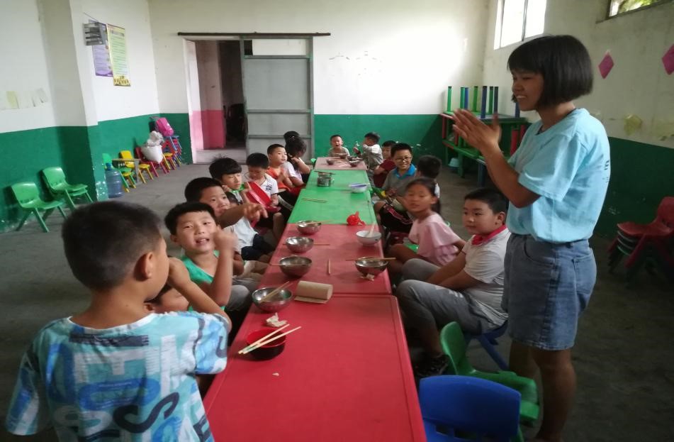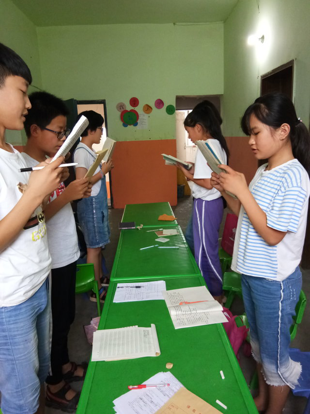 7月5日,团队正式开始教学任务。队员们明确分工,相互配合,积极备课,孩子们在课堂上表现积极,与老师相处融洽。为了严抓英语基础,队员制订了早读计划,每天早上都会让学生背诵讲过的知识点,并逐一提问。美术课上,老师为学生们讲解绘画技巧,带领他们用画笔描绘出缤纷世界。音乐课上,孩子们大声歌唱,跟着音乐老师遨游在音乐的海洋里。