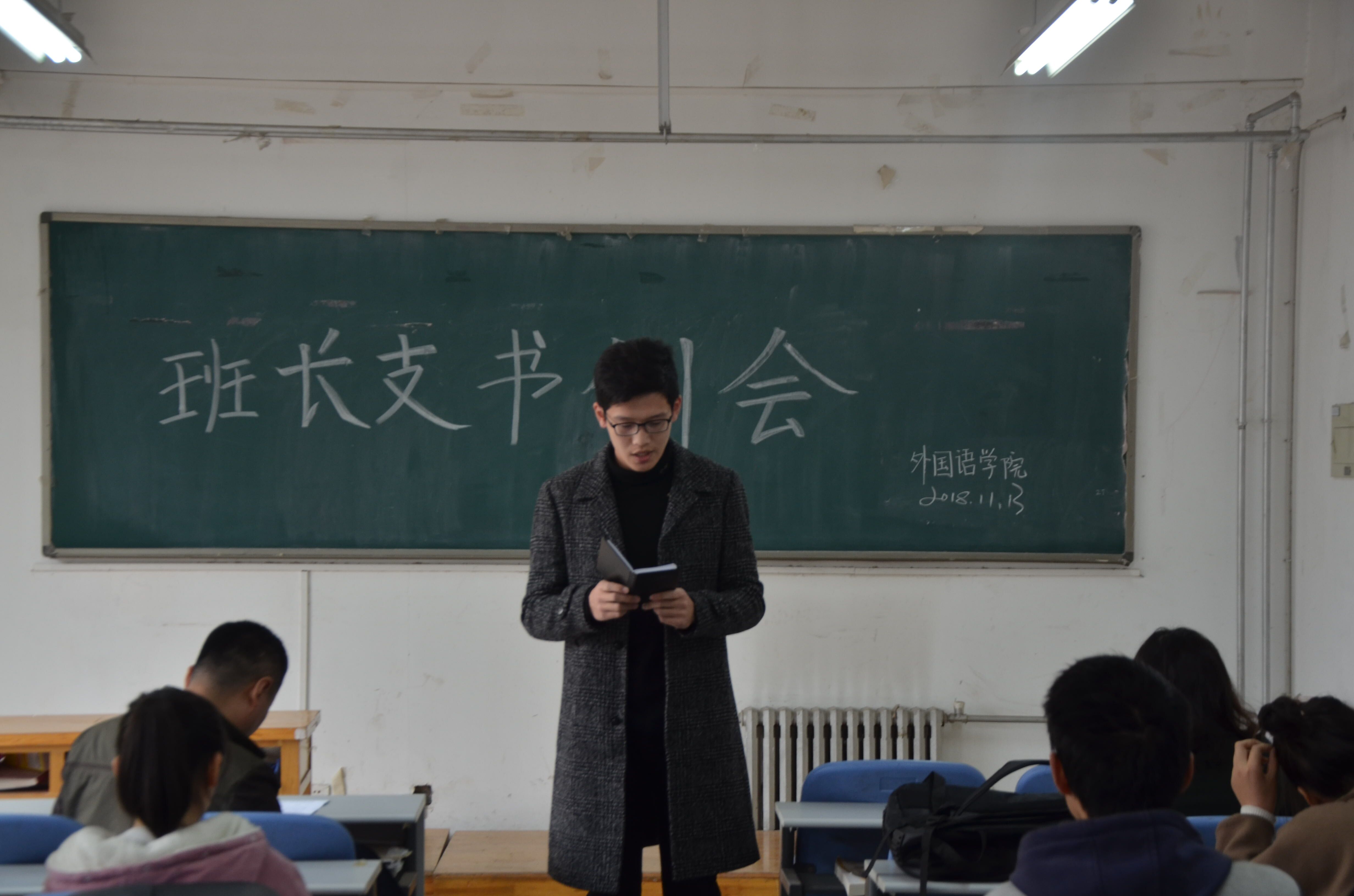 会议伊始,主要学生干部对各部门上周工作进行了汇报总结并对近期工作进行了详细安排。其中,学生会学科部督促各班本周内召开专四宣讲会,进行专四真题训练,并强调专四过关率高的班级将会获得丰厚的奖励。就成人频道 学生个人德育量化管理细则(第九修正案),学生会办公室再次向各班班长支书征求意见和建议并进行及时修改。随后,团委办公室主任楚聪对上周道德讲堂活动出勤率较高的班级提出表扬,并详细安排了本周团日活动及青年大学习等相关工作,进一步深入学习贯彻党的理论思想。最后,李沛强调了寝室防火防电等安全注意事项,表现出了对成人频道 学生的深切关怀。接着,他公布了学院近些年来的专四、专八过关率、日语N1过关率、考研率等数据,重点强调了早晚自习的重要性:早自习大声朗读可以提高口语能力,晚自习多看外语原版小说可以增强语感,同时鼓励成人频道 学子坚持早晚自习,努力学习专业知识,积极掌握专业技能,书写精彩的大学生活。