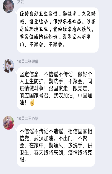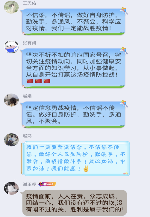 师生上下一道,众志成城,共克时艰,各司其职,坚决打好这场疫情防控阻击战!