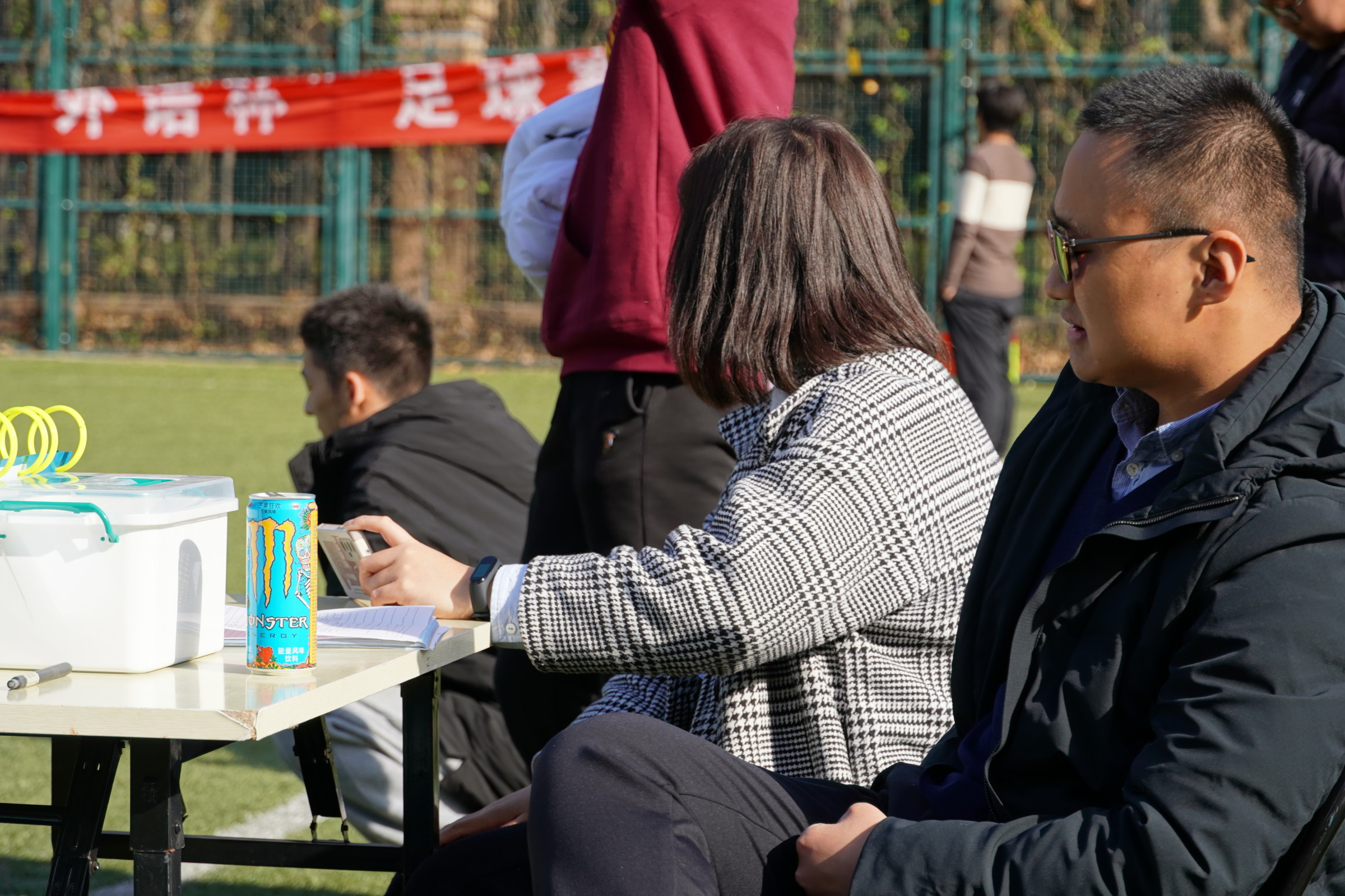 本网讯(审稿:陈桃 供稿:黄湘 )绿茵点亮梦想,激情舞动青春。为丰富学生校园生活,促进学生合作交流,近日,成人频道 在龙子湖校区足球场举行“外语杯足球赛”。学院团委副书记冯超和辅导员穆君怡携观众到场参观比赛。