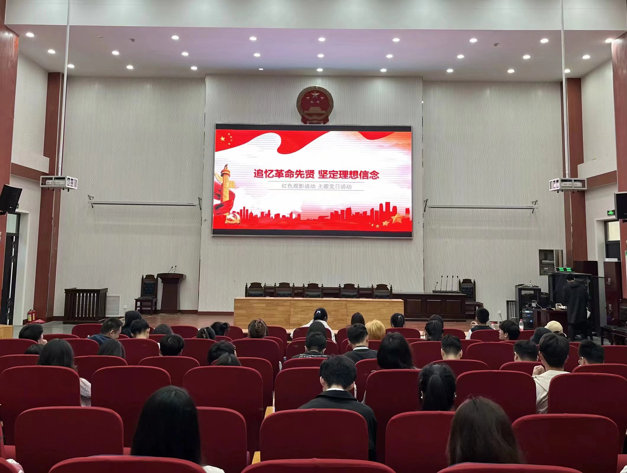 与文法学院、经管学院、信管学院共同组织党员在繁塔楼模拟法庭开展“红色光影”活动,学院21级全体学生党员及大学生党建办公室学生干部参加此次活动。