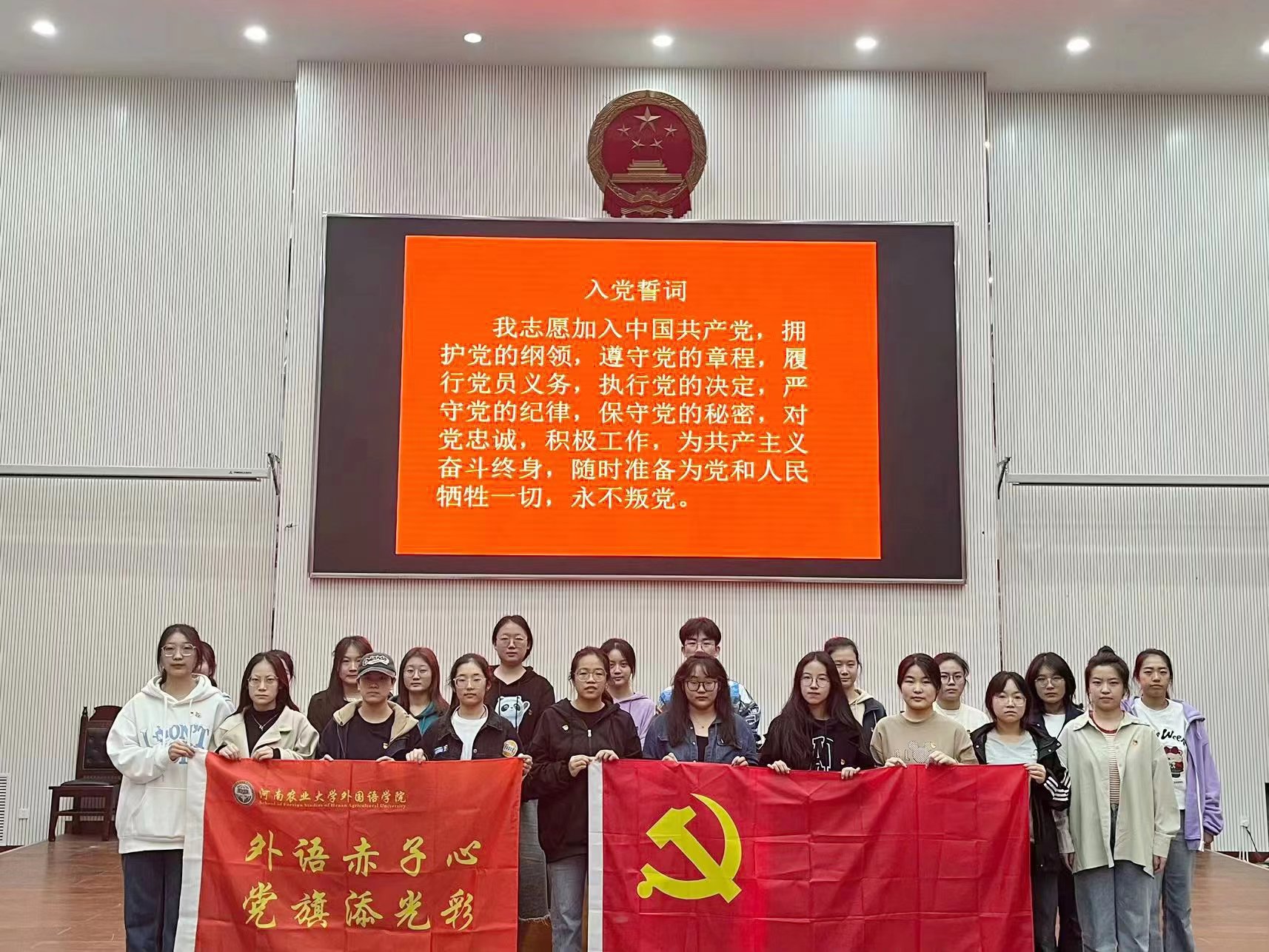 21级全体学生党员在鲜红的中国共产党党旗前,重温入党宣誓词,铮铮誓言响彻大厅,青年使命永续于心。