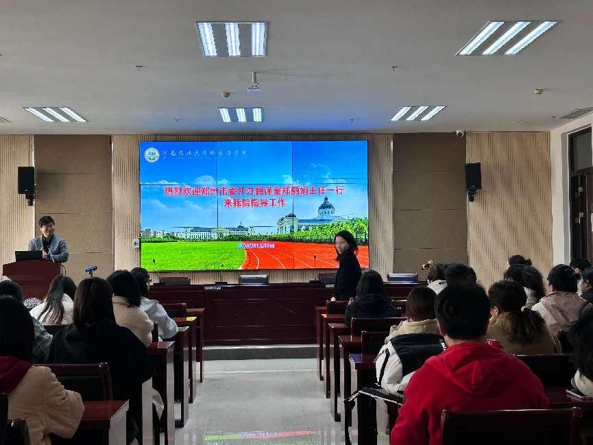 本网讯(审稿:吴玲 供稿:马孝幸 摄影:王铭琪)11月17日上午,郑州市委外事办翻译室主任郑丽娟、郑州农业发展集团总经理郭钰瑶和泰禾会务公司经理张帅洋一行来成人频道
