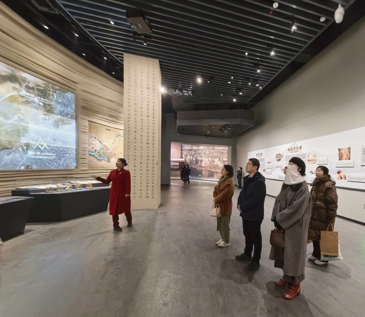 大河村遗址是中原地区重要的新石器时代遗址,博物馆展馆陈列厅以“星空下的村落”为主题,分为六大部分,包括序厅、千年古村、五彩家园、筑起辉煌、追梦星空、大河长虹,全面展示中国新石器时代中晚期大河村先民创造的灿烂远古文化。通过沉浸式体验和裸眼3D技术,生动还原了原始部落的生活场景,近距离感受了大河村村民的日常生活。调研过程中,与馆方专业人员深入交流,系统参观并重点了解了博物馆的公众服务流程、教育项目设置以及日常运营中对志愿者、实习生的岗位需求与能力要求。