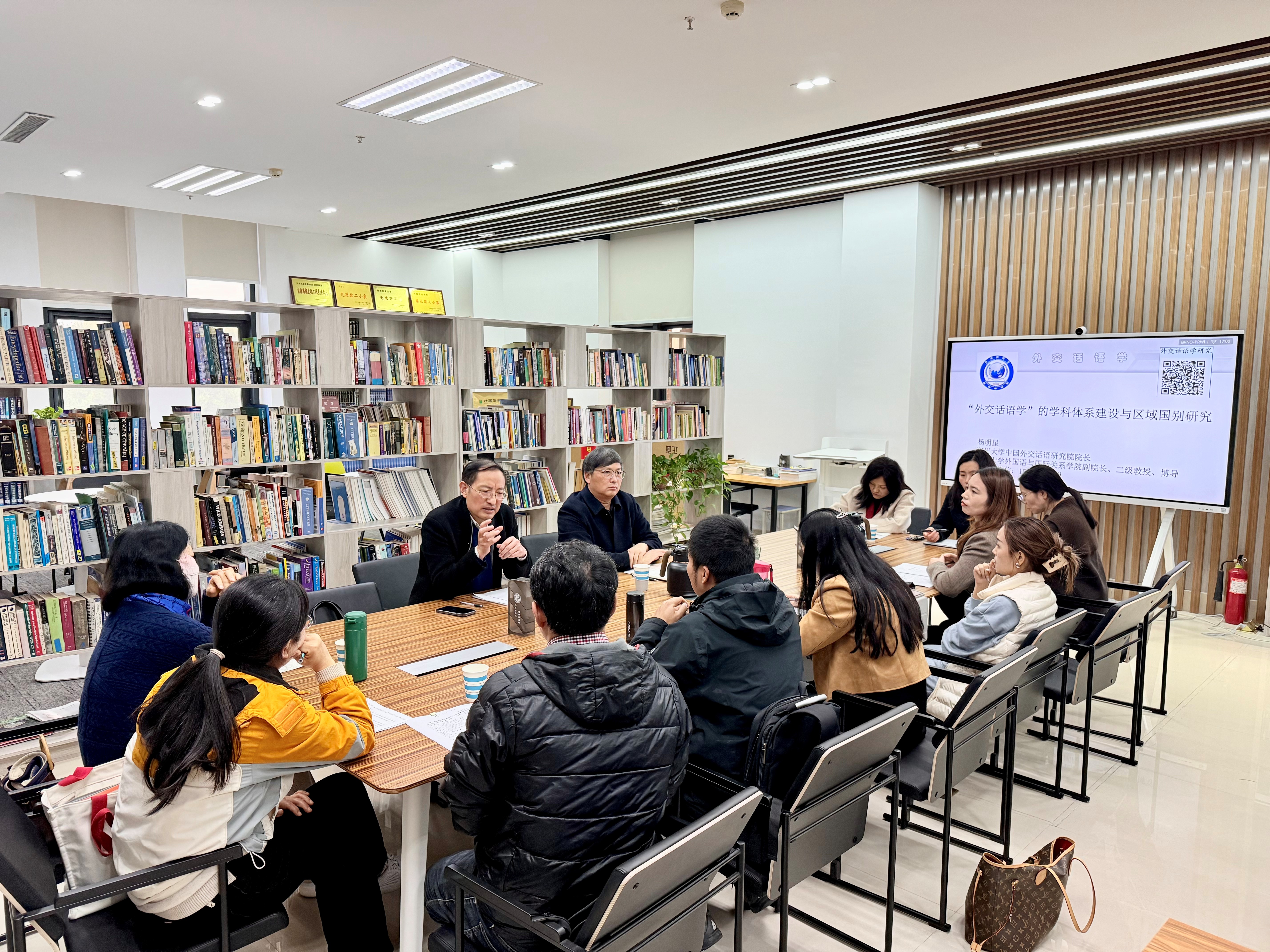在第二场报告中,杨明星教授围绕六大核心内容,深入解读“外交话语学”:其产生的时代背景、总体特征与学科价值;学科布局与传播功能;中国特色大国外交话语能力建设路径;以外交话语为突破口,推动外语学科创新发展与传播转向的实践方向;以及郑州大学在该学科构建与国际传播人才培养中的具体举措。报告清晰阐释了外交话语学的学科内涵,凸显其回应时代需求、满足国家急需的应用跨学科特性,为外语学科与其他学科的交叉融合研究提供了新范式。