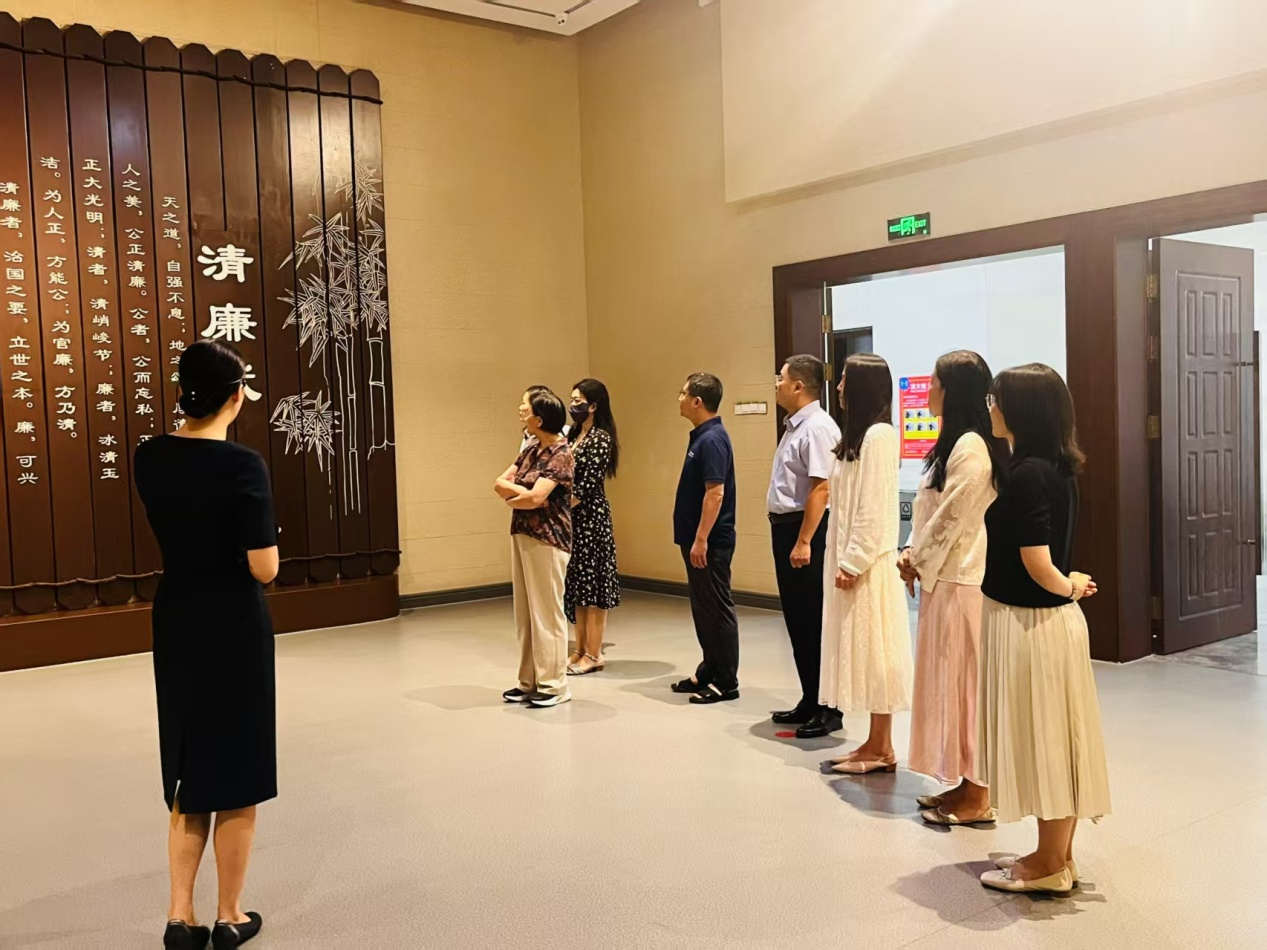 本网讯(审稿:杨鑫 供稿:张琴)在庆祝中国共产党成立104周年之际,为深入贯彻落实党的二十大精神,推动学习贯彻习近平新时代中国特色社会主义思想主题教育走深走实,加强党风廉政建设,增强党员干部廉洁自律意识,7月1日下午,成人频道 研究生英语教学部教工党支部和翻译系教工党支部赴河南廉政文化教育中心开展廉洁教育主题党日活动。院党委副书记杨鑫、研究生英语教学部教工党支部书记魏少敏,翻译系教工党支部书记豆涛及支部党员参加活动。
