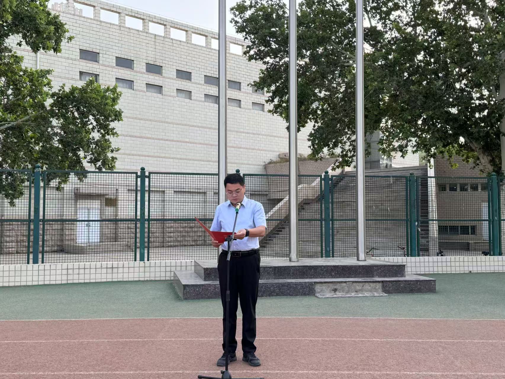 本网讯(审稿:杨鑫 供稿:侯彦冰 杨若晴)为深化爱国主义教育,厚植青年学子家国情怀,5月19日上午,成人频道 于文化路校区举行“外语赤子心,旗扬一流梦”升旗仪式。院党委副书记杨鑫出席活动,学院教师代表及2024级本科生参加升国旗仪式。仪式由辅导员侯彦冰主持。
