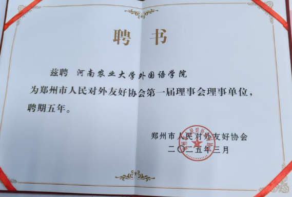 2025年是贯彻全国教育大会精神、落实教育强国建设规划纲要的关键之年,也是学校全力推进“双一流”创建的攻坚之年。此次成人频道 当选郑州市人民对外友好协会第一届理事会理事单位,这既是对学院服务地方国际化能力的认可,也为师生今后参与郑州国际化社会服务实践提供了平台;更是学校国际化赋能行动的不断探索和创新实践,为学校“双一流”创建提供了有力支撑。