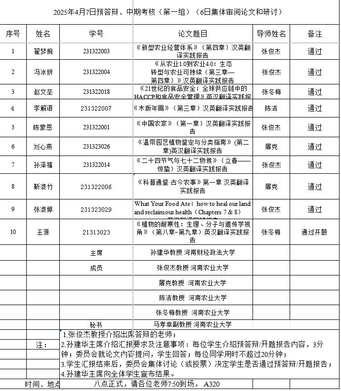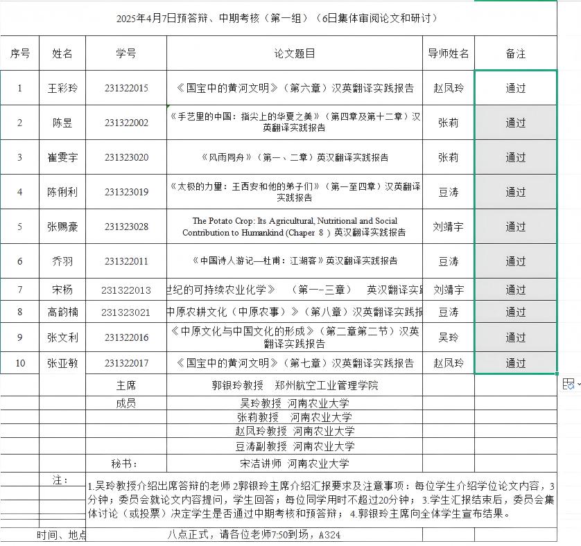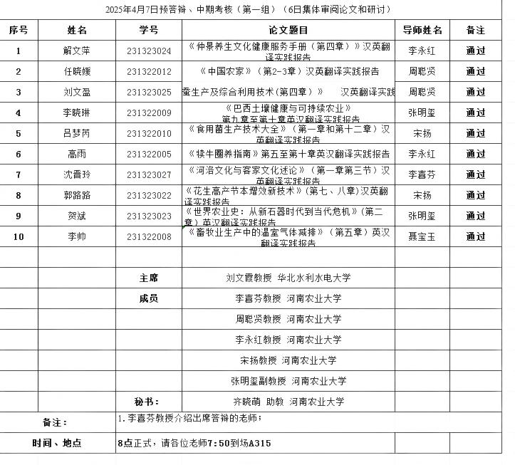 组织开展了2025年英语笔译专业研究生学位论文预答辩暨中期考核和开题报告论证会。本次论证会特邀华北水利水电大学刘文霞教授、河南财经政法大学孙建华教授和郑州航空工业管理学院郭银玲教授分别担任论证小组主席,成人频道