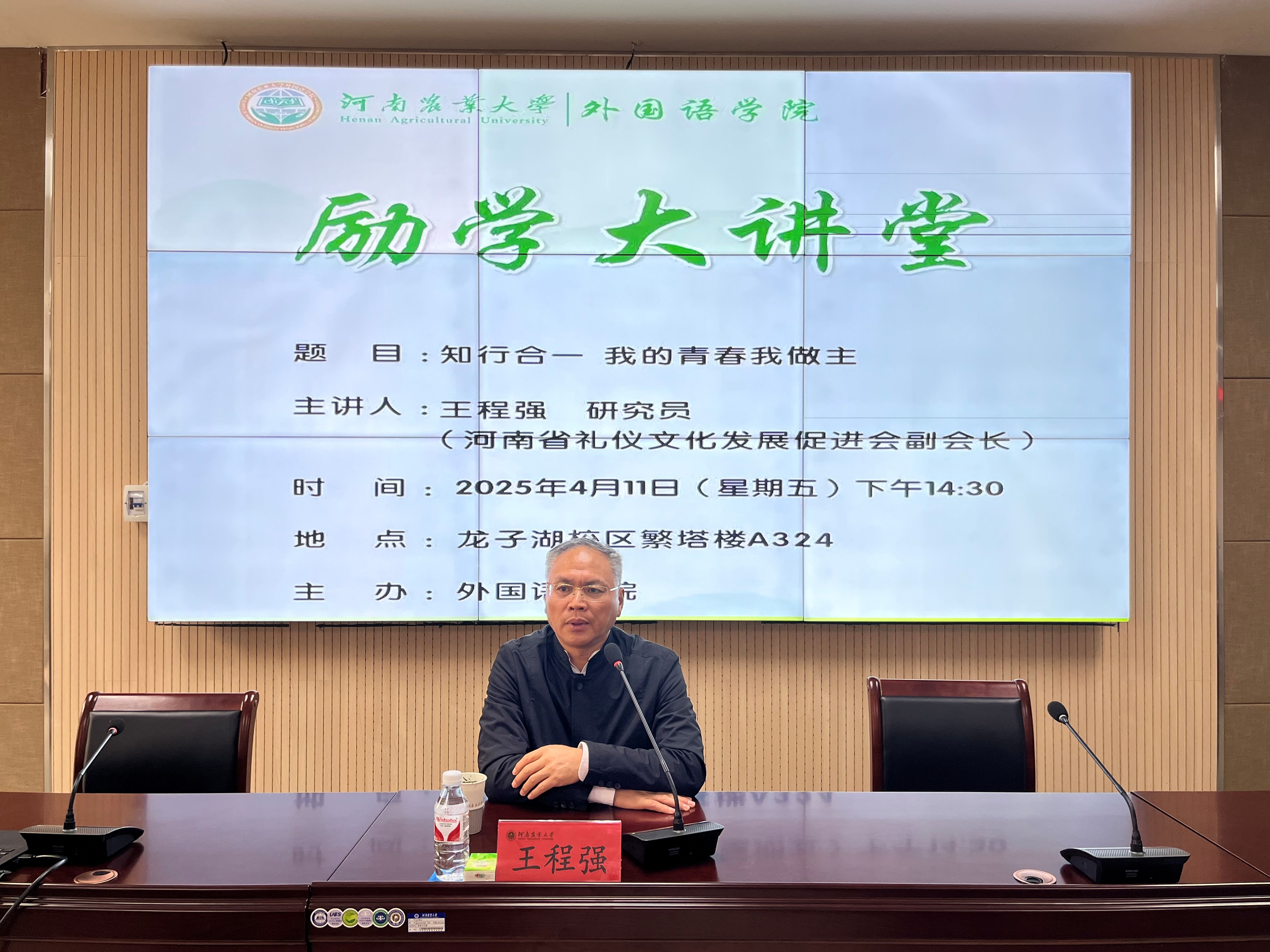本网讯(审稿:吴玲 供稿:马孝幸 摄影:黄彪)4月11日下午河南省礼仪文化发展促进会副会长王程强研究员、硕导应邀做客成人频道 第81期励学大讲堂暨中外农耕文明交流互鉴讲坛,做了题为“ 知行合一 我的青春我做主”的报告会。报告会由院长张俊杰教授主持,成人频道 师生参加了此次报告会。