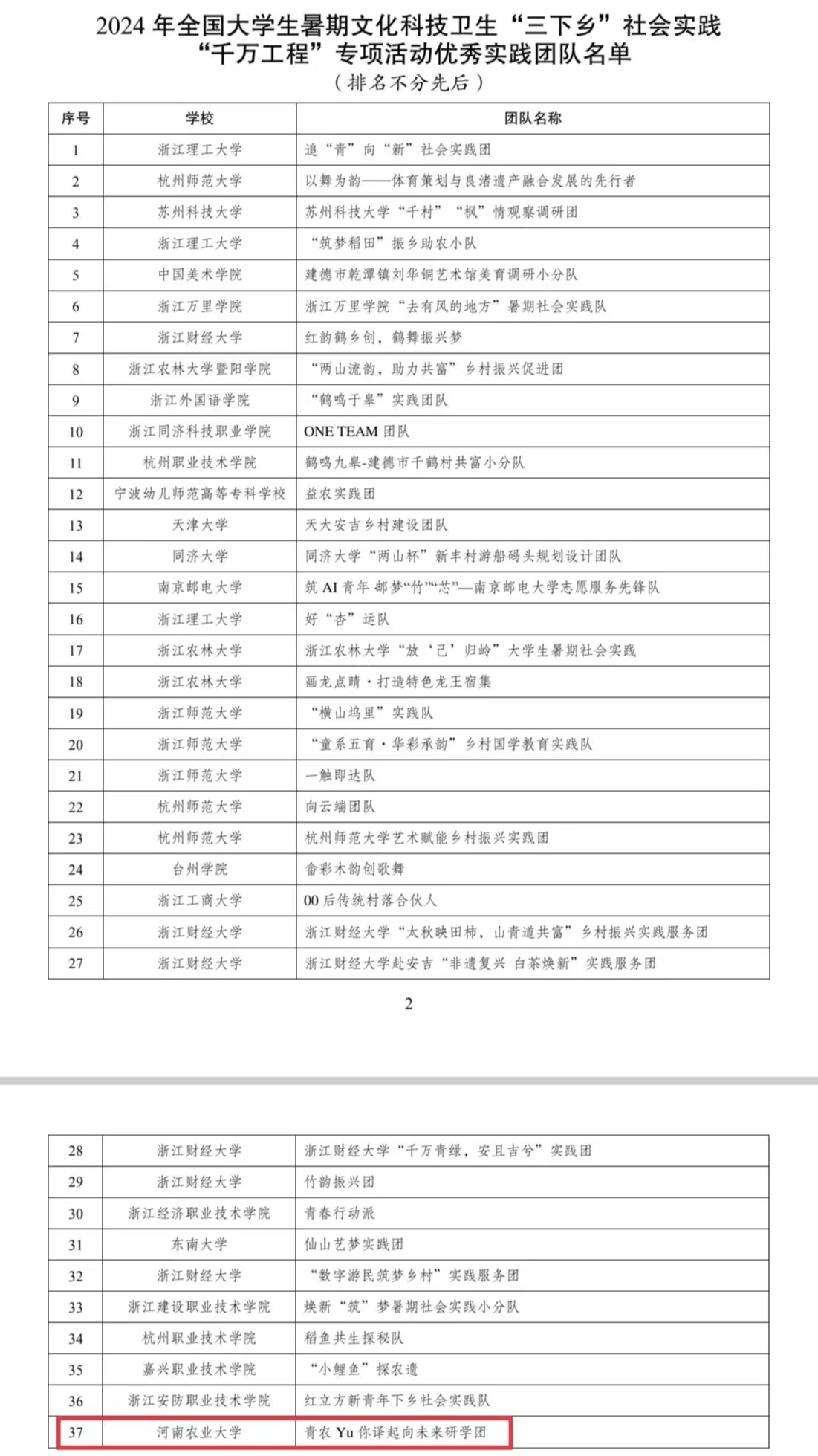 据悉,2024年全国大学生暑期文化科技卫生“三下乡”社会实践“千万工程”专项活动由中国青年创业就业基金会、共青团浙江省委员会主办,自活动启动以来,得到全国各地青年学子的积极响应,共有完成实践的入选团队246个,经过作品申报、资格筛选、展示点赞等环节,遴选出了37个优秀实践团队。