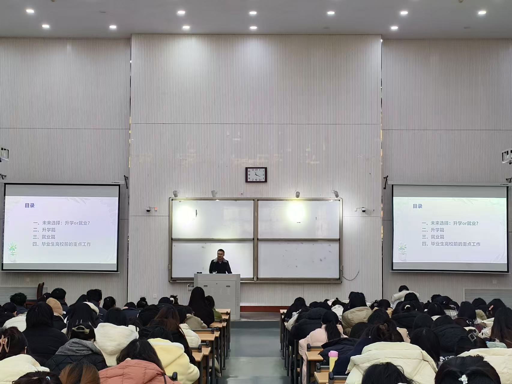 本网讯(审稿:杨鑫 供稿:侯彦冰 杨若晴)为扎实推进2025届毕业生就业指导与服务工作,促进毕业生高质量就业,1月3日上午,成人频道 于龙子湖校区大教室5召开2025届毕业生就业创业工作启动大会暨实习动员会。院党委副书记杨鑫、副院长吴玲出席会议,各系部室主任、副主任、毕业生班主任、辅导员、2025届全体研究生、本科毕业生参加会议。会议由院团委书记冯超主持。