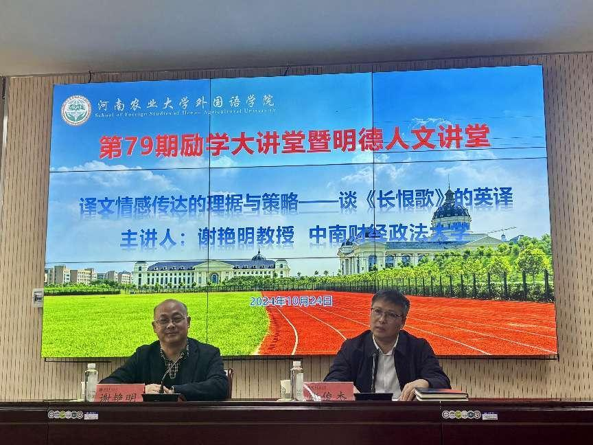 第79期励学大讲堂暨明德人文讲堂,做了题为“译文情感传达的理据与策略——谈《长恨歌》的英译”的报告会。报告会由院长张俊杰教授主持,成人频道