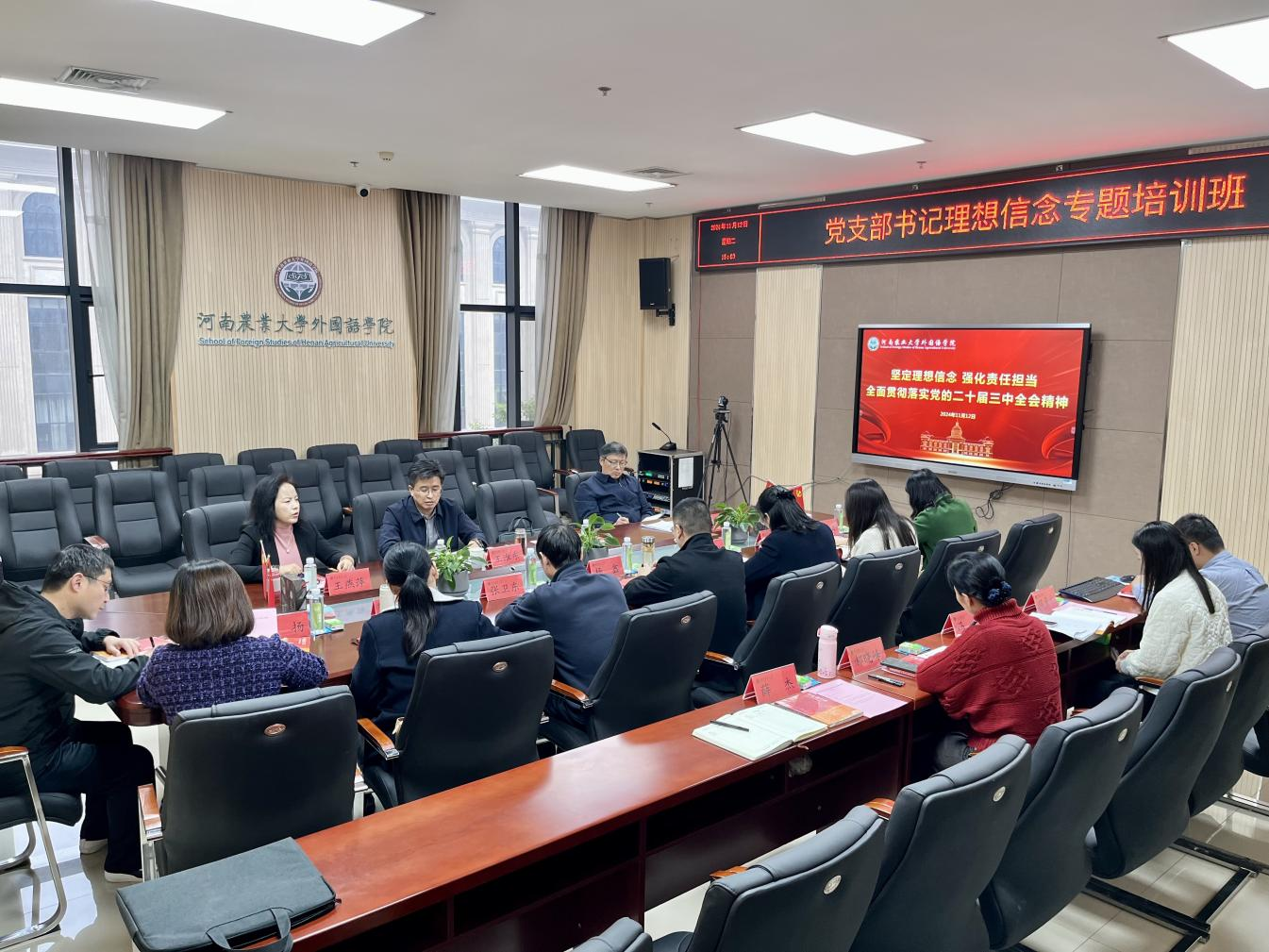 本网讯(审稿:杨鑫 供稿:薛杰)为深入学习贯彻党的二十届三中全会精神,进一步强化基层党组织建设,推动学院党建工作高质量发展,提高各党支部书记的业务能力和综合素质,11月12日,成人频道 举办党支部书记理想信念专题培训班,并邀请校纪委副书记王淮东作专题报告。院党委书记王燕萍、院长张俊杰携全体领导班子出席会议,学院全体党支部书记参加培训,会议由王燕萍主持。