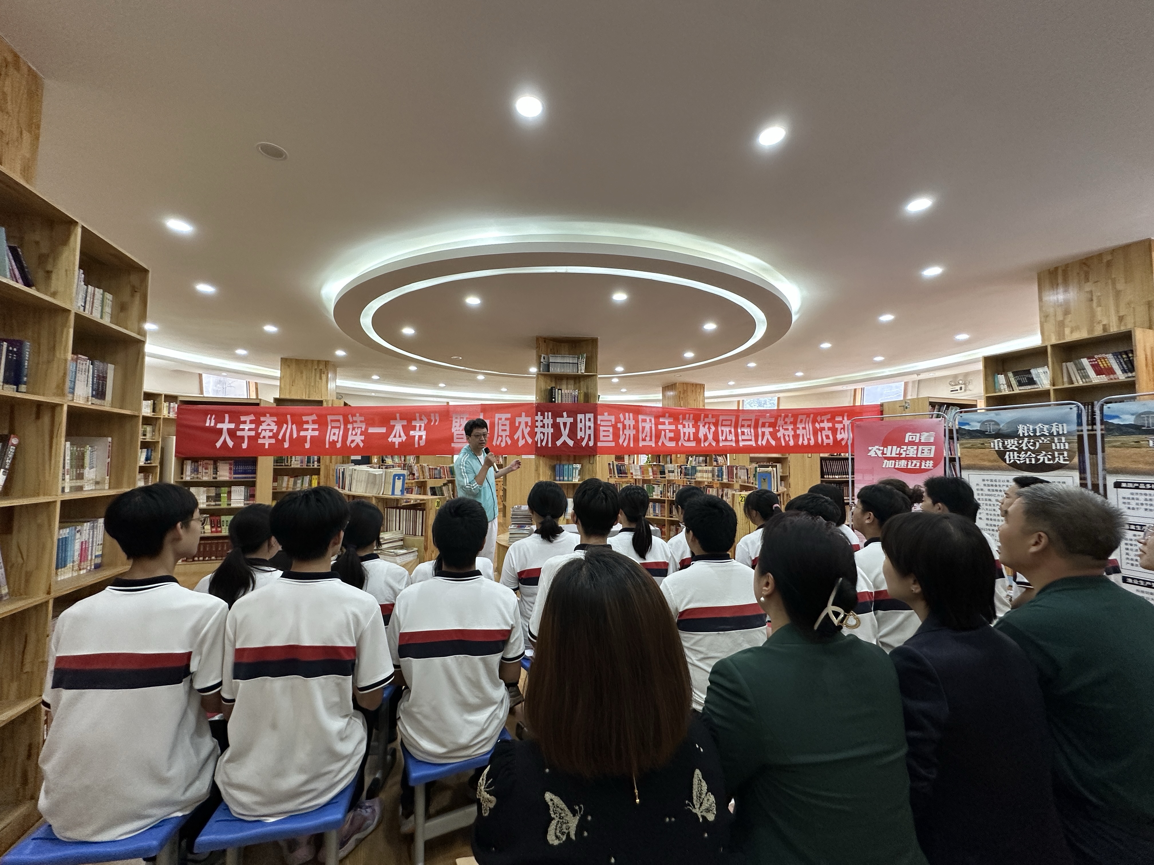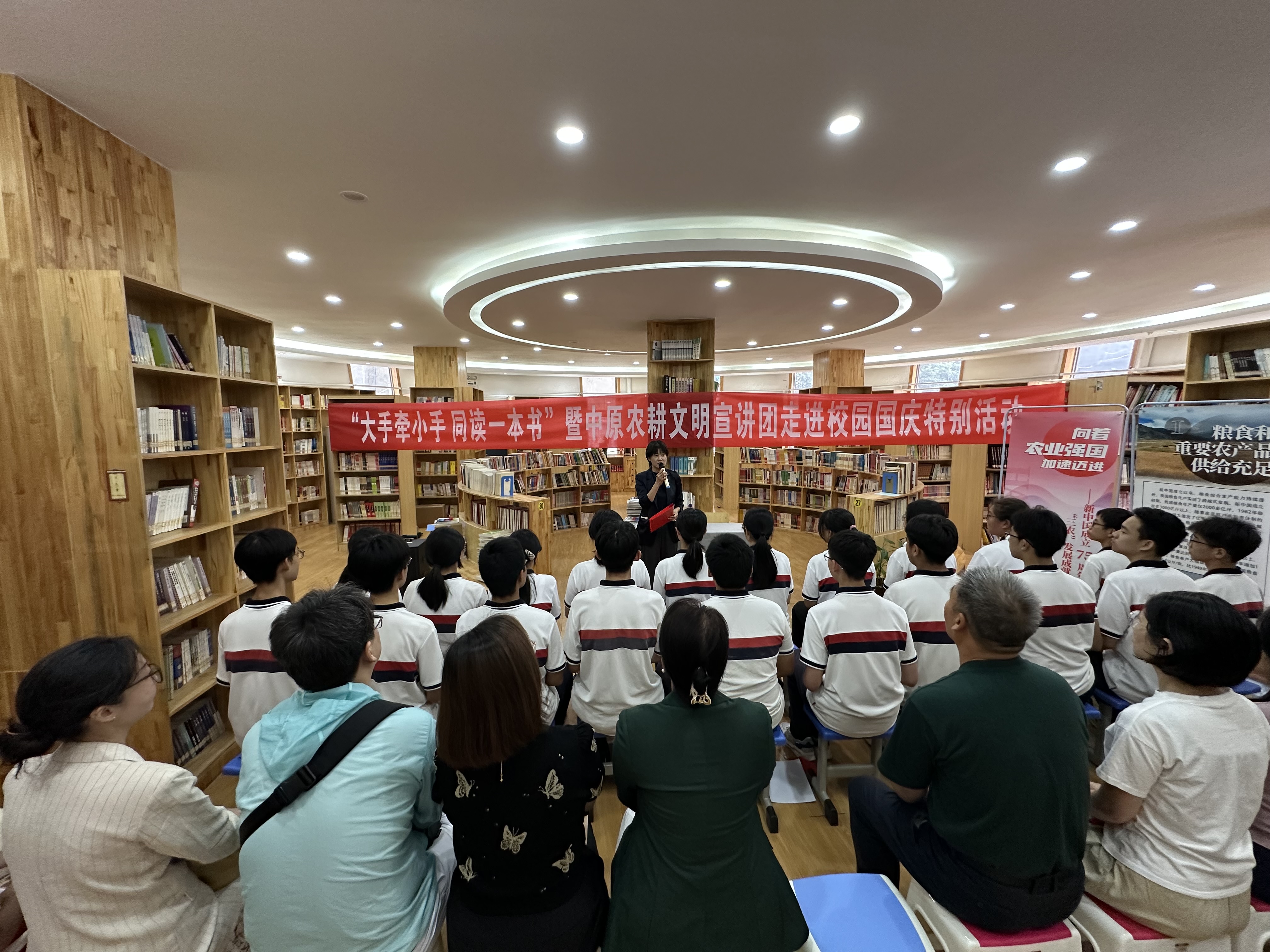 与农大附中联合开展“大手牵小手 同读一本书”暨中原农耕文明宣讲团走进校园国庆特别活动。农大附中党总支书记徐佳,成人频道