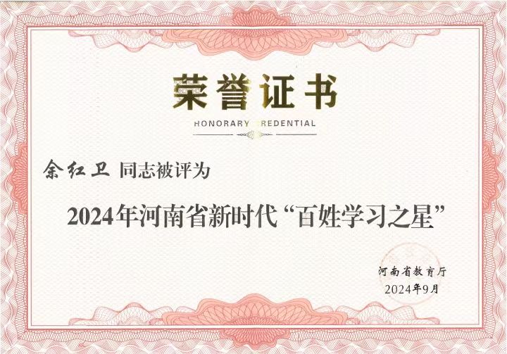 成人频道 教师获2024年河南省新时代“百姓学习之星”荣誉称号