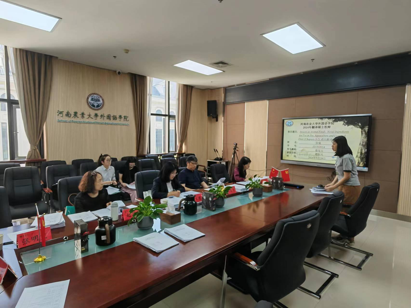 本网讯(审稿:张俊杰 供稿:马孝幸)5月28日,成人频道 组织开展了2024届翻译硕士论文答辩工作。本次答辩论证会特邀郑州大学外国语与国际关系学院王志伟教授、华北水利水电大学刘文霞教授、河南师范大学赵文静教授担任三个答辩小组主席,成人频道 全体硕士生导师担任答辩委员,2024届30名硕士研究生参加本次答辩,2023年全体新晋导师及2023级硕士研究生观摩。