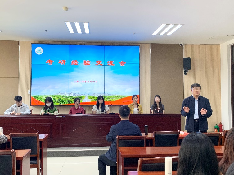 翻译系在繁塔楼A324举行了一场高效务实的考研经验交流会。此次活动邀请了2020级6位考研优秀学生代表,为即将面临考研挑战的2021级和2022级同学传授宝贵经验。院长张俊杰携翻译系全体教师出席了本次活动。本次活动由翻译系主任豆涛主持。