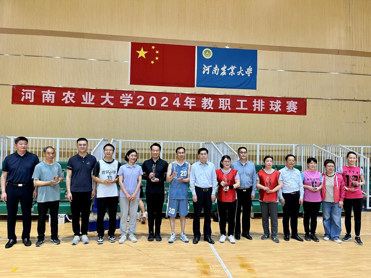 本网讯(审稿:王燕萍 供稿:郝晓峰)2024年5月9日,全校教职工排球比赛圆满落幕,外语国教教职工男子排球联队经过8场比赛的激烈角逐,斩获亚军,副校长郭战伟为亚军队颁发了奖杯。本次比赛在成人频道 龙子湖校区举行,历时22天、全校25个代表队参加。