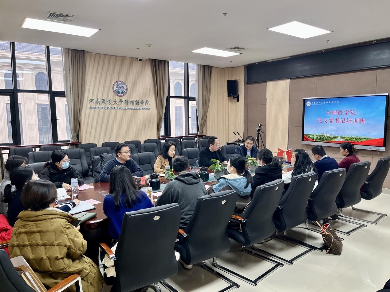 邀请校党委组织部组织科科长王肖肖、校党委统战部民主党派科科长焦帅于繁塔楼A320会议室举办党支部书记培训班。院党委书记王燕萍携全体党支部书记参加培训,会议由院党委副书记王启佩主持。