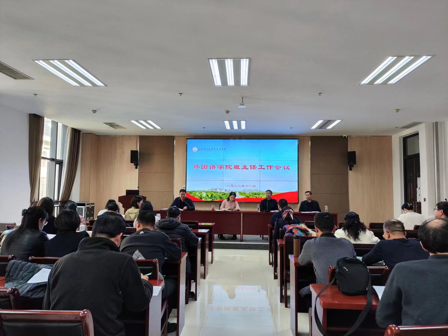 本网讯(审稿:王启佩 供稿:武宗励)为强化班级管理,增强班级工作经验交流,确保学院安全稳定,11月14日下午,成人频道 在龙子湖校区召开2023年秋季学期班主任工作会议,院党委书记王燕萍、院长张俊杰携全体班子成员出席会议,学院全体班主任、辅导员参加会议。会议由院党委副书记王启佩主持。