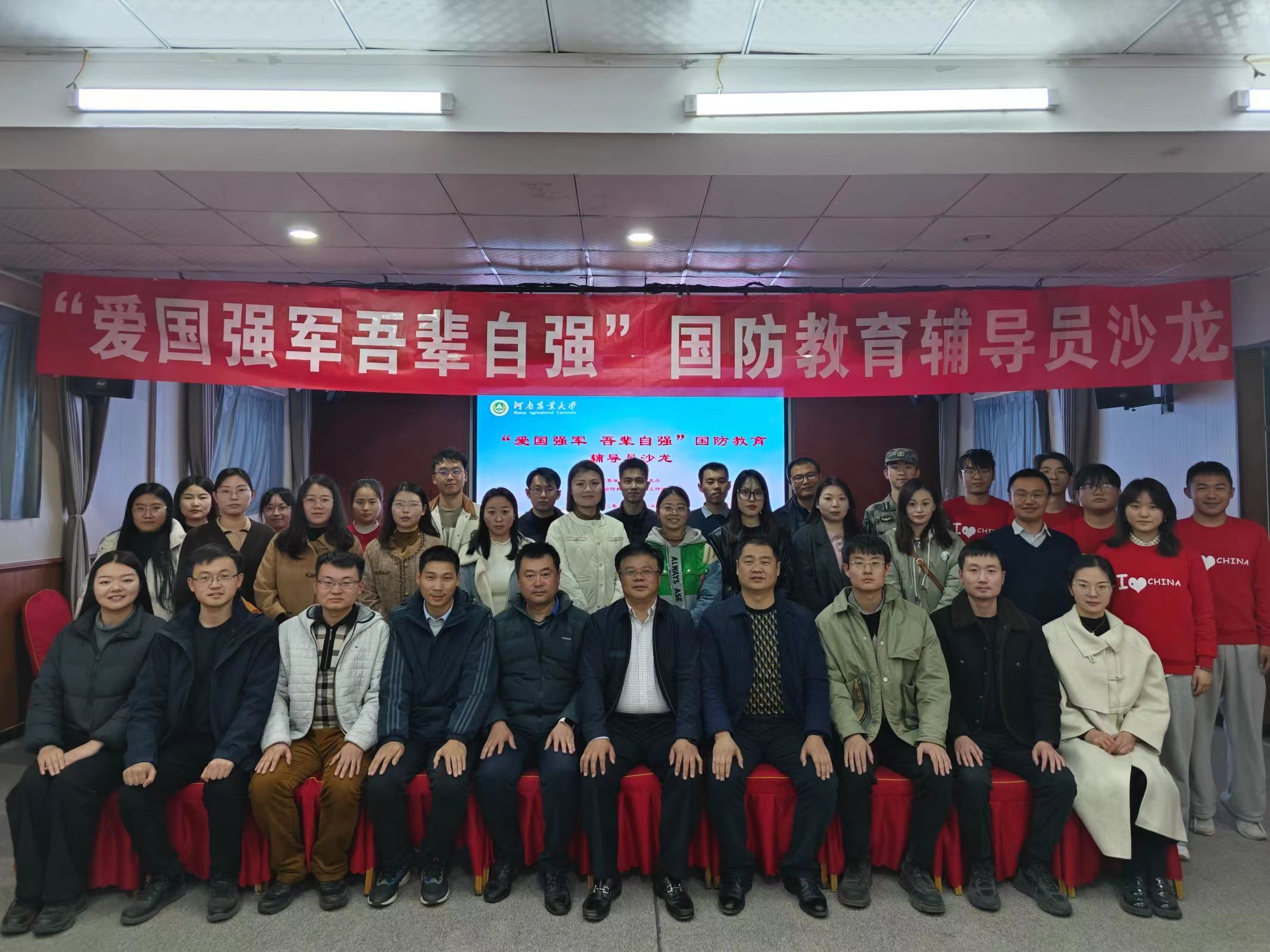 本网讯(审稿:王启佩 供稿:冯超)为深入学习习近平总书记关于加强全民国防教育的重要指示精神,提高辅导员军事理论课的授课水平和国防教育能力,11月17日上午,由校党委学生工作部主办,成人频道 青春长城国防教育辅导员工作室承办的“爱国强军 吾辈自强”国防教育辅导员沙龙在河南省国防教育基地顺利举办。校党委学工部(学生处、武装部)部长徐峰、校党委学工部(学生处、武装部)副部长李沛出席活动。各学院辅导员代表及成人频道 青马班学生代表参加活动。活动由青春长城国防教育辅导员工作室负责人、成人频道 党委副书记王启佩主持。