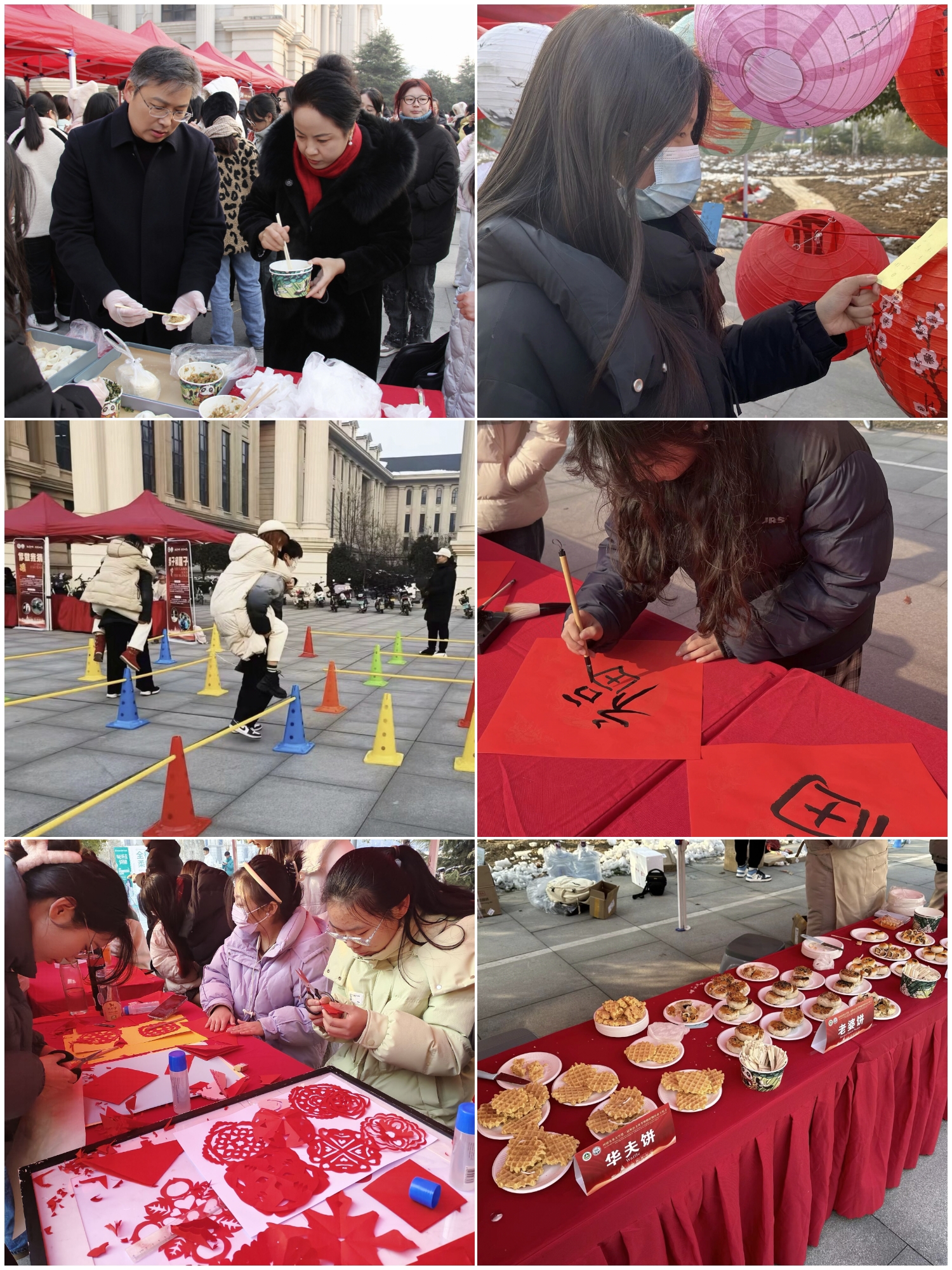 现场设有缤纷外语展示区,融通中外互动区,世界美食体验区三个区域。包饺子、猜灯谜、玩游戏、品美食、送祝福......丰富多彩的活动让师生们在品味中外文化差异、践悟古今传统变迁中感悟中华优秀传统文化的博大精深和外语学习的魅力,进一步坚定了专业自信、文化自信。