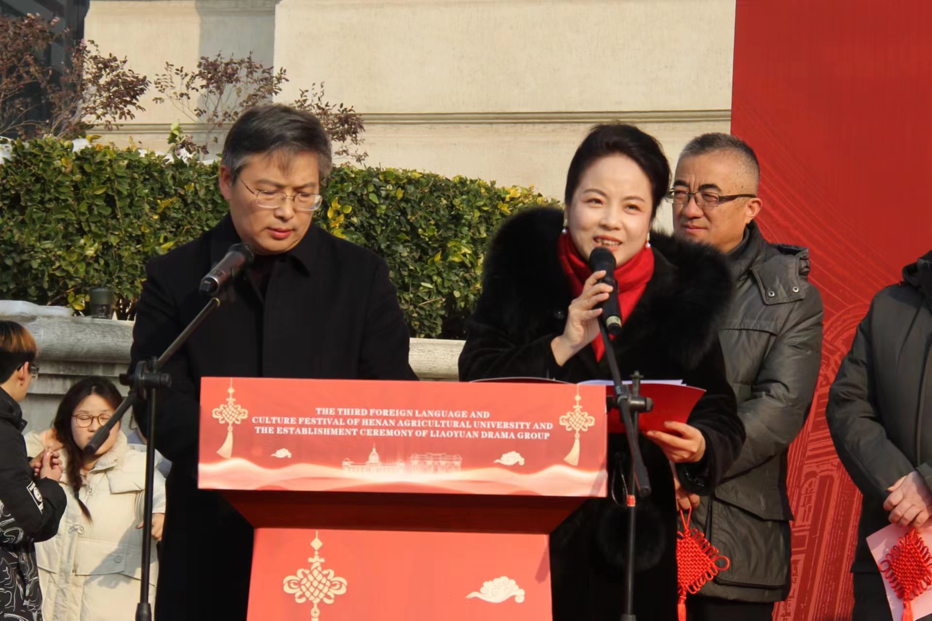 本网讯(审稿:王启佩 供稿:冯超 许菲)与君远相知,不道云海深。为传承与发扬中华优秀传统文化,激发学生对世界文化的兴趣,营造浓厚的校园文化氛围, 12月19日下午,成人频道 在龙子湖校区繁塔楼C座西广场隆重举行成人频道 第三届外语文化节暨燎原剧社成立仪式。校长介晓磊,副校长尚富德、杨喜田,燎原剧社校外指导教师、中央电视台军事频道、中央人民广播电台特聘专家配音指导、河南广播电视台直播河南制片人张艳,河南大学河南艺术戏剧学院副院长李晔飞莅临现场,校党委办公室、宣传部、学工部、研工部、校团委、教务处、保卫处、社会科学处、国际合作处等单位负责同志及成人频道 全体师生参与活动。开幕式由成人频道 党委书记王燕萍、院长张俊杰主持。