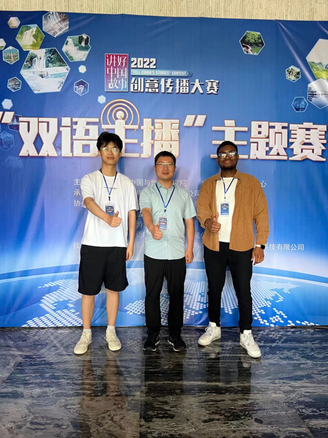 本网讯(审稿:王启佩 供稿:豆涛 冯超)9月15日至9月17日,2022“讲好中国故事”创意传播大赛双语主播主题赛现场赛在贵州省安顺市黄果树旅游区顺利举行。成人频道 2020级翻译一班初学然以第十二届全国口译大赛河南省复赛第一名“口译之星”身份,在指导教师豆涛老师的带领下共赴赛场,在决赛中脱颖而出并斩获三等奖。