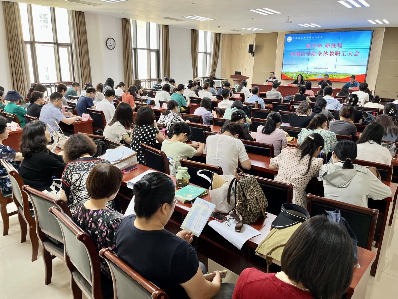 院长张俊杰对学院暑期工作进行了总结,新学年教学工作进行了安排。他肯定了暑期本科教学质量审核评估材料准备、河南省外国文学比比较文学学会2023年年会承办工作。传达了学校教学工作会议精神,对下一步本科教学质量评估工作提出要求,对秋季学期教育教学工作进行了部署。