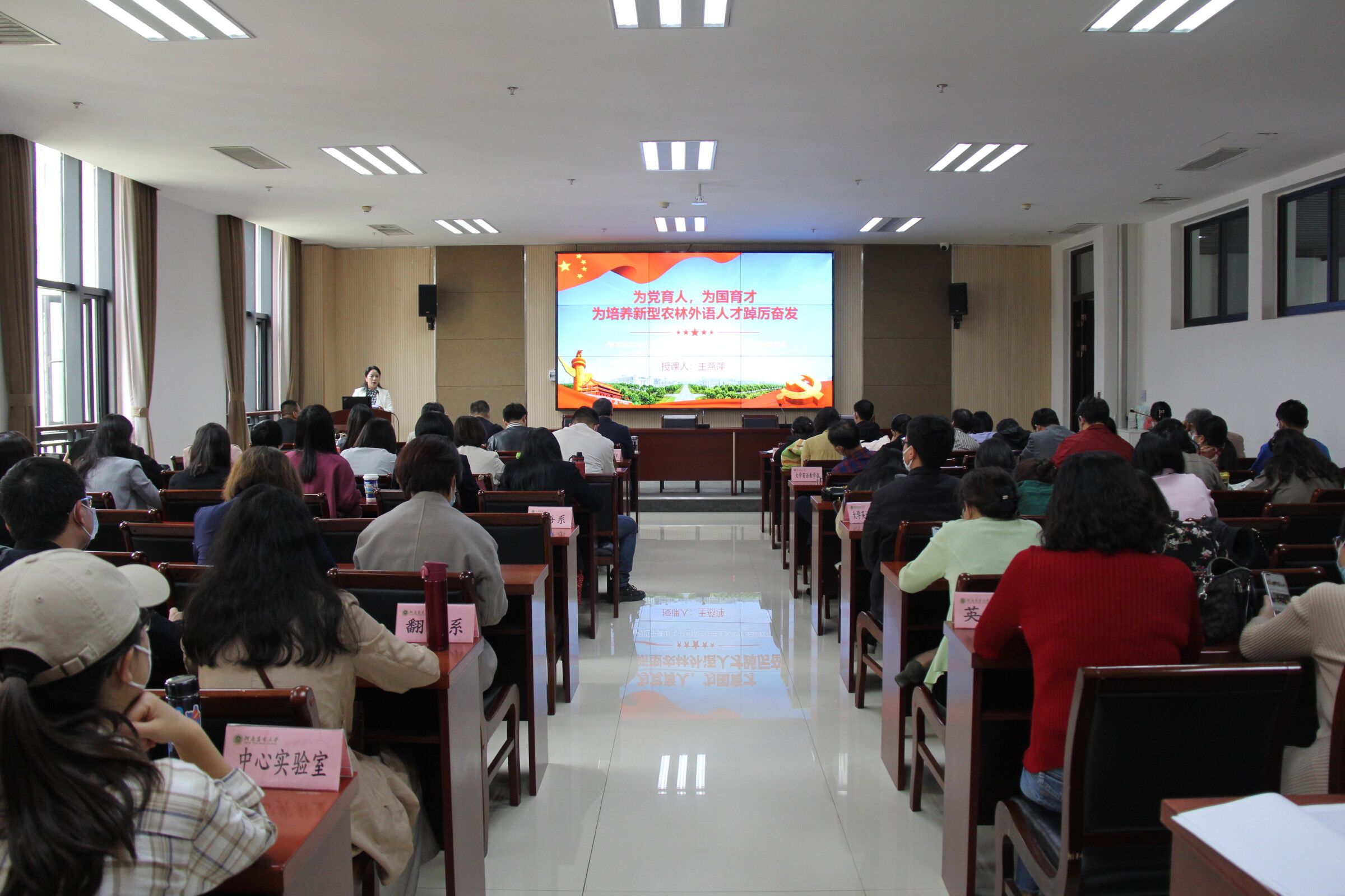 党委书记王燕萍以“为党育人,为国育才,为培养新型农林外语人才踔厉奋发”为主题向全体教职工讲授专题党课。