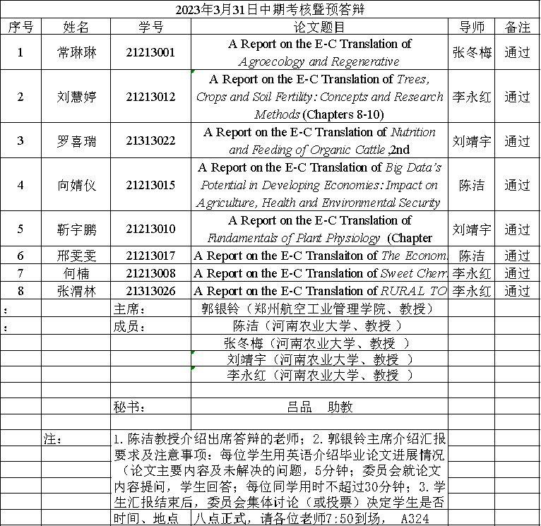 成人频道 举行2023年英语笔译专业研究生中期考核暨学位论文预答辩