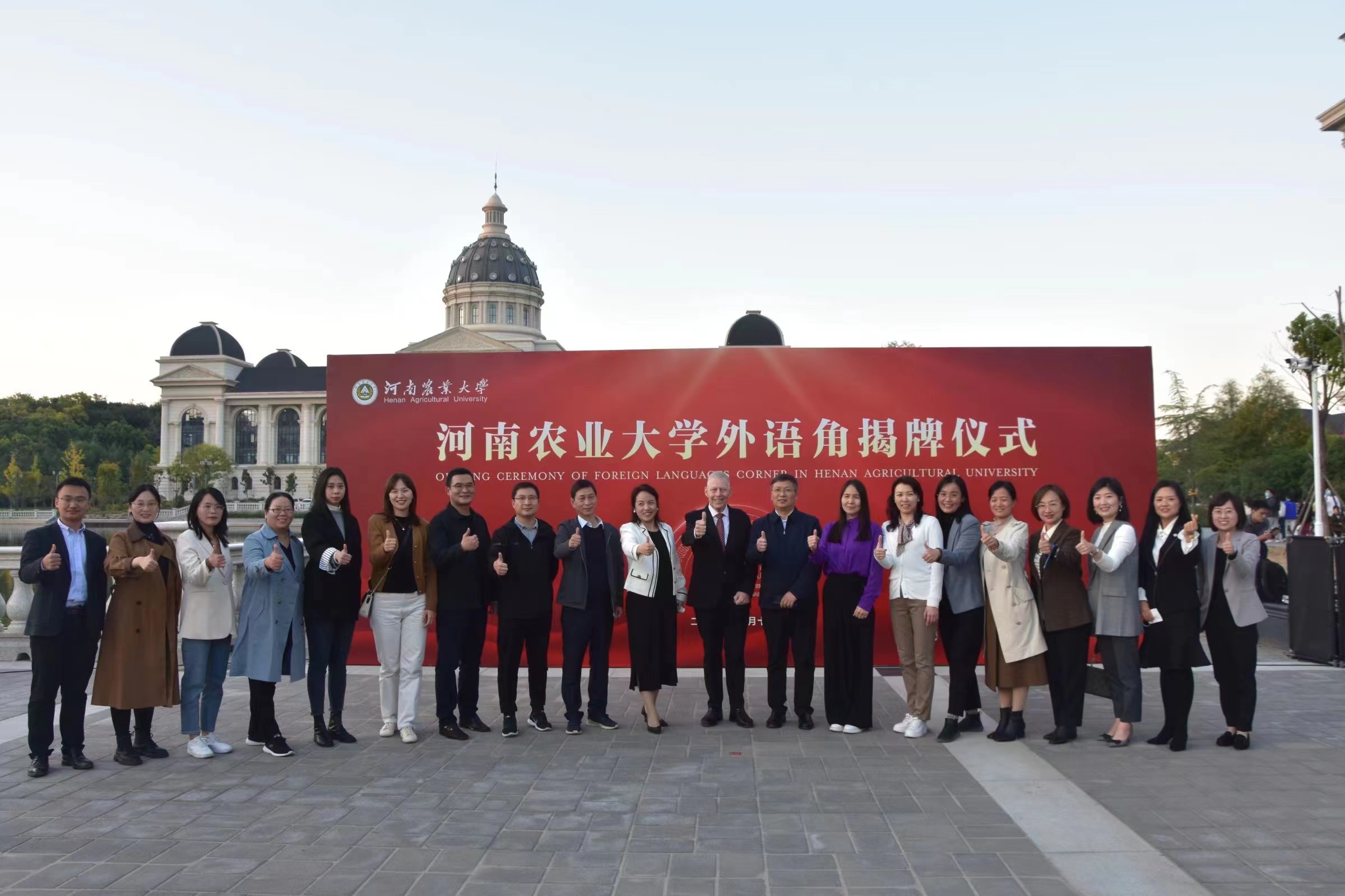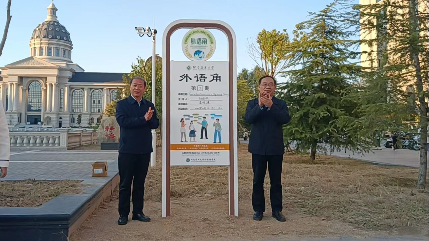 外语角”揭牌仪式在龙子湖校区举行。校长介晓磊、副校长尚富德出席活动,党委宣传部、党委学工部、校团委、教务处、国际交流合作处、研究生院等相关职能部门负责人和外籍教师代表、成人频道