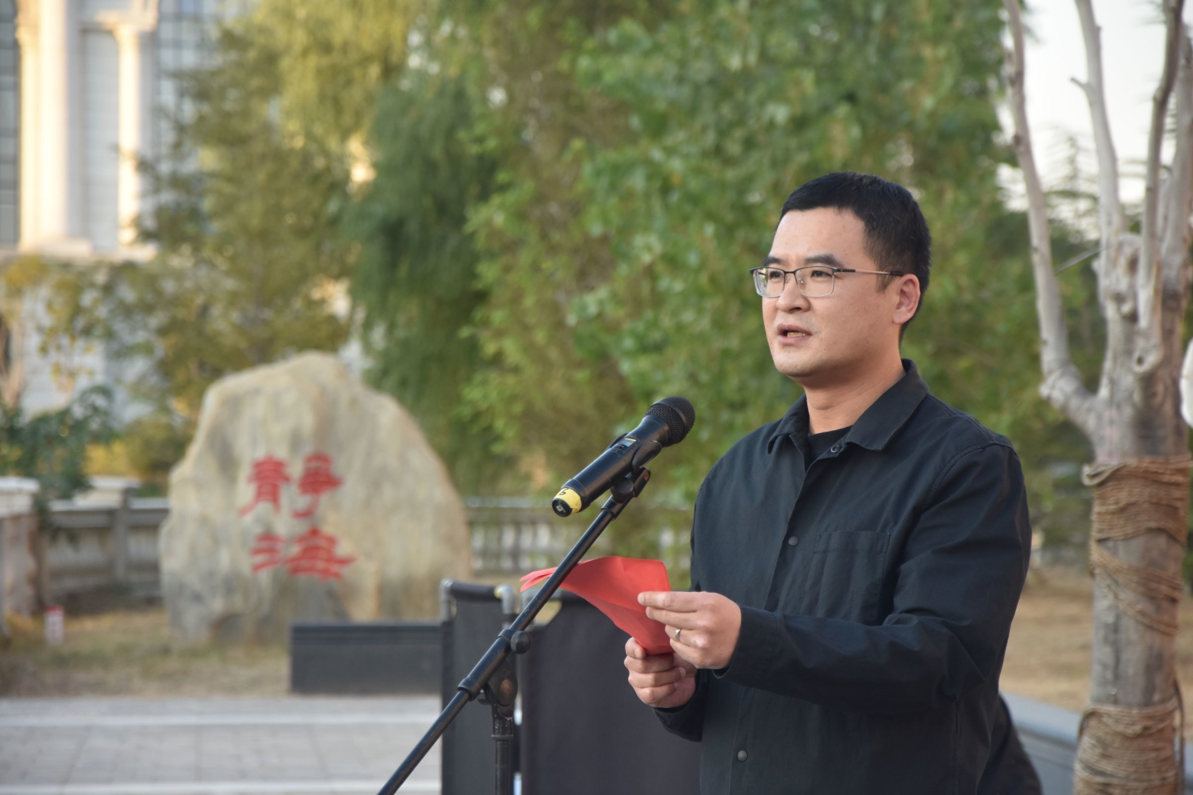 介晓磊发表讲话,他用英语给现场的师生提出三点希望,一是用好外语这个工具,这个武器,外语是一项非常重要的交流技能,在新时代提高用外语表达的能力,才能不断讲好中国故事;二是师生积极参与,保持热爱,勇敢表达,进一步掌握“听说读写译”五项基本技能,为学校创建中国特色世界一流农业大学打好基础;三是发挥好外语角平台的作用,成人频道