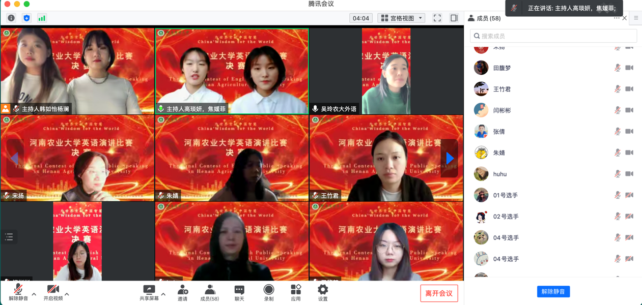 本次比赛以“China's Wisdom for the World”为主题,分为专业组和非专业组两个组别,比赛自今年5月份正式启动,采取线上方式进行。参赛选手围绕主题分别进行3分钟定题演讲和2分钟即兴问答,比赛现场选手们慷慨陈词、各抒己见,充分展示了农大学子扎实牢固的英语基础、自信从容的精神风貌、贯通中外的全球视野和大国青年的责任担当。经过近三个小时的激烈角逐,最终评选出特等奖2名、一等奖7名、二等奖13名、三等奖20名和优秀奖若干名。