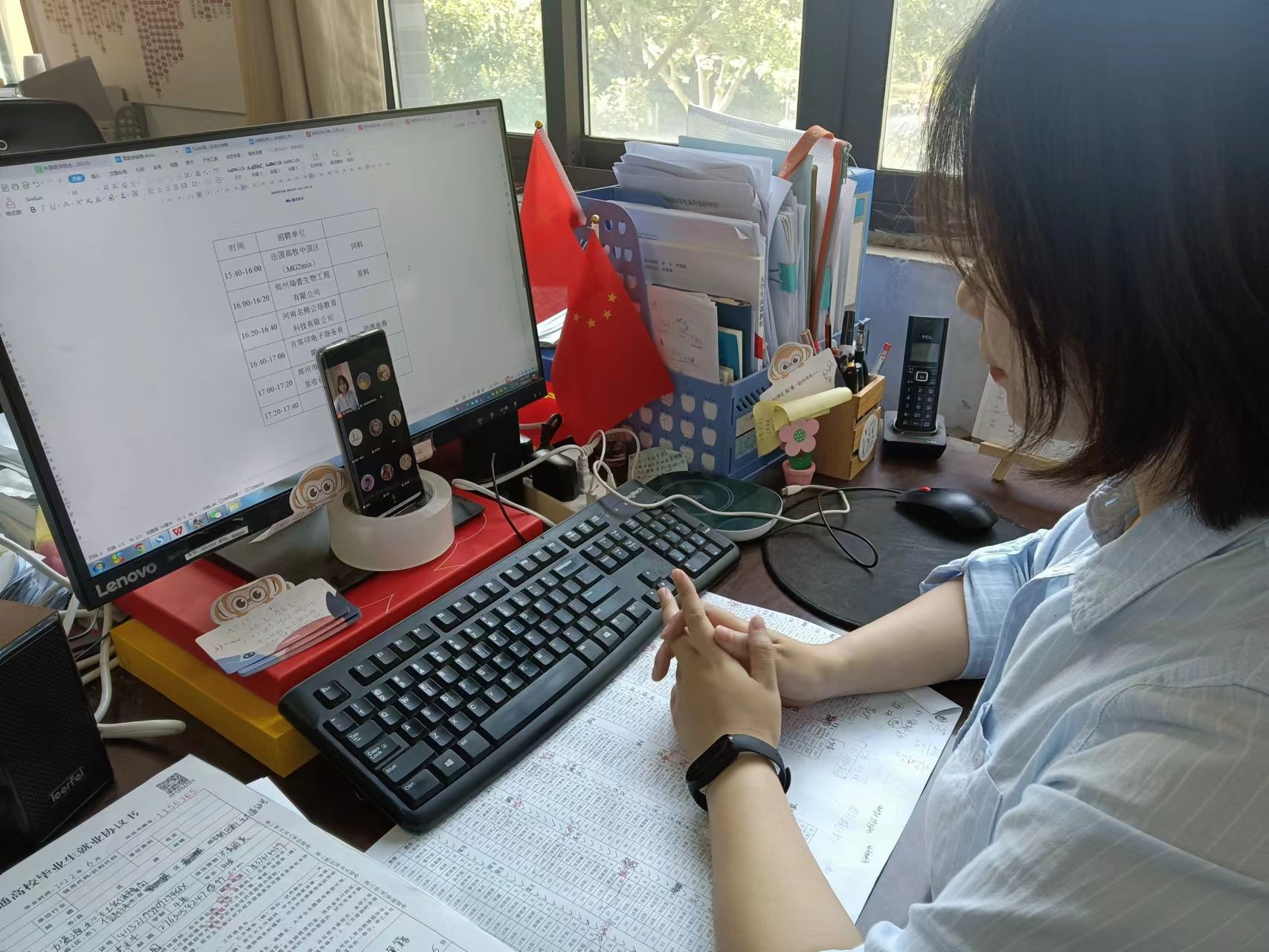 院长张俊杰与各大参会企业以线上形式进行交流,会议由辅导员穆君怡主持。