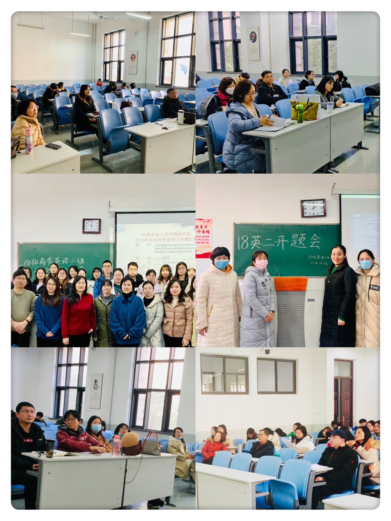 在龙子湖校区繁塔楼举行2022届英语专业、商务英语专业、日语专业本科毕业论文开题会。共有259名学生分组线下参与。全院41名导师担任答辩委员。