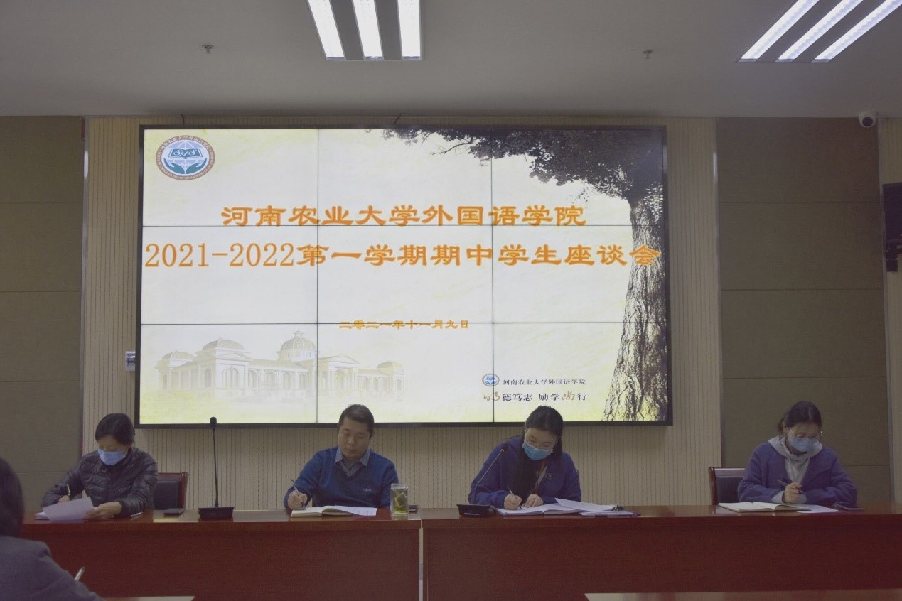 为深入了解学院教学情况,倾听学生意见,进一步加强教学管理,提高教学质量, 11月9日下午,学院于龙子湖校区繁塔楼A324会议室召开了2021-2022第一学期学生座谈会。院领导班子成员、各系部代表教师以及各班学生代表参加会议。会议由院党委书记邓振营主持。