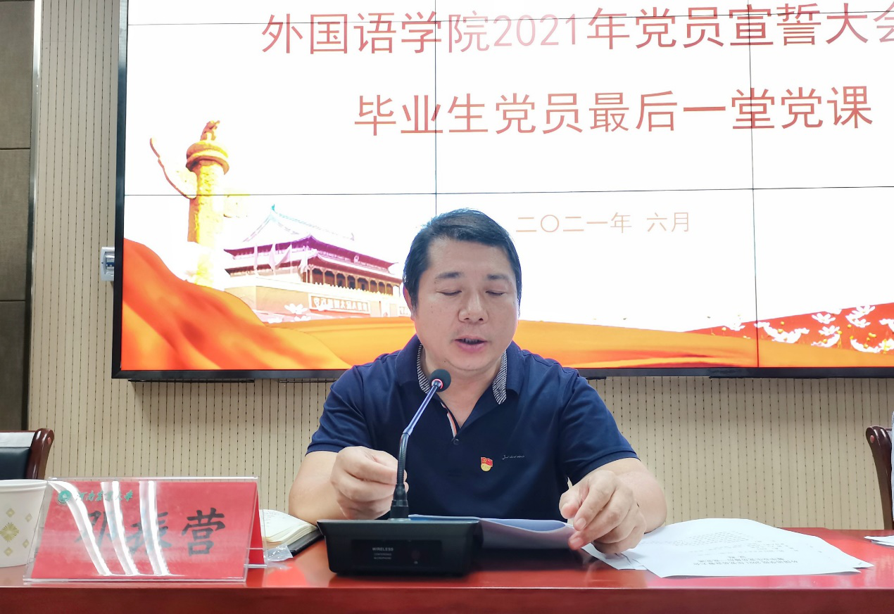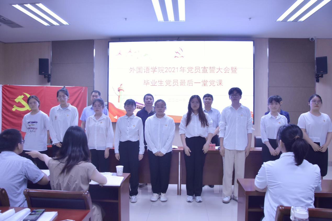 于6月7日晚举办了2021年党员宣誓大会暨毕业生党员离校前最后一堂党课。院领导班子成员,及全体学生党员参加会议。