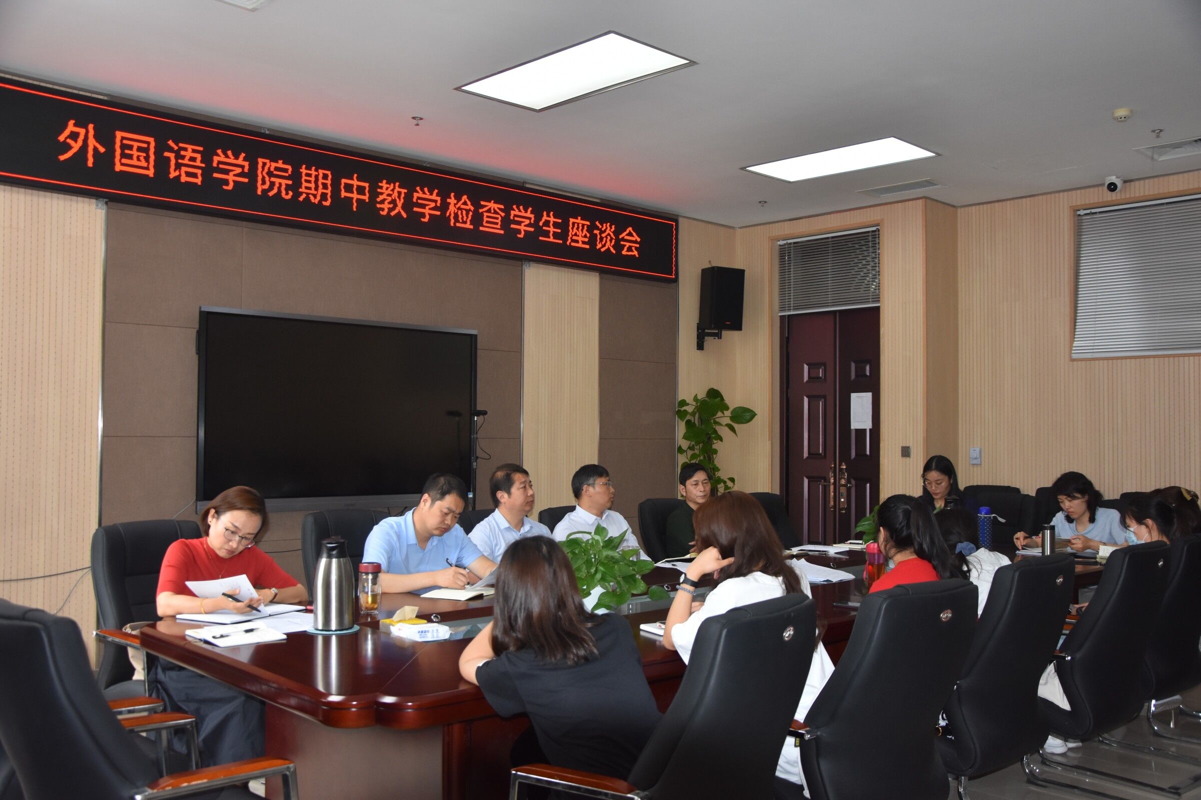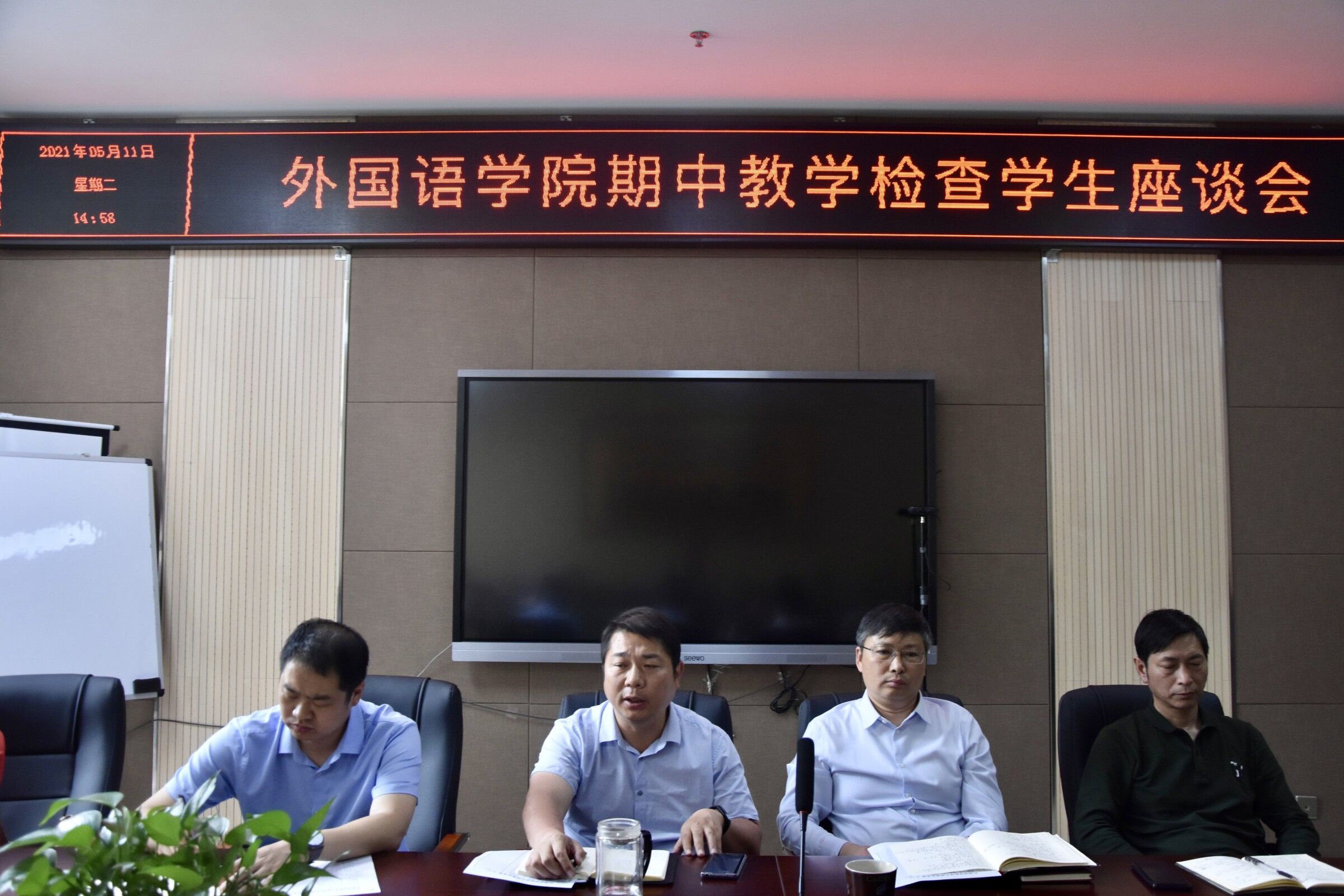于龙子湖校区繁塔楼A320会议室召开期中教学检查学生座谈会。院领导班子成员,各系部室主任以及各班学生代表,参加会议。会议由院党委书记邓振营主持。